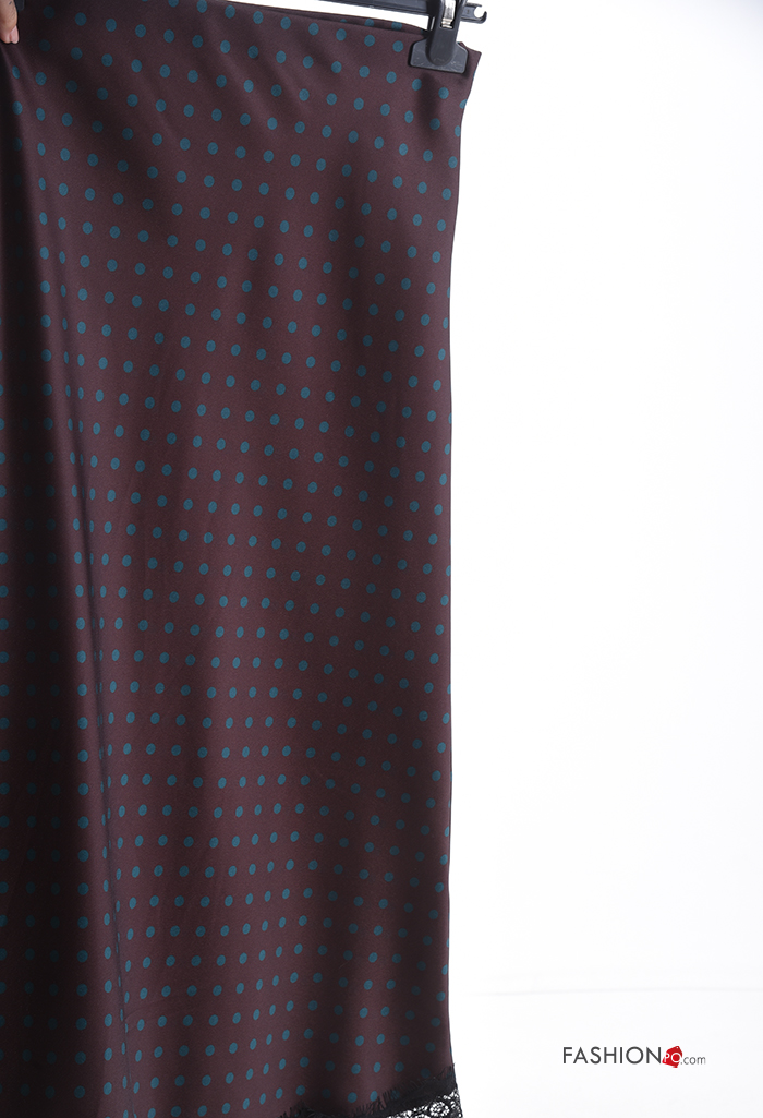 Jupe détail dentelle satin Imprimé à pois avec élastique