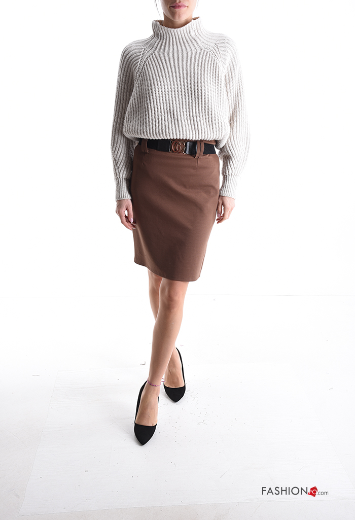 Jupe Longuette à genoux avec fermeture éclair avec fonte avec ceinture