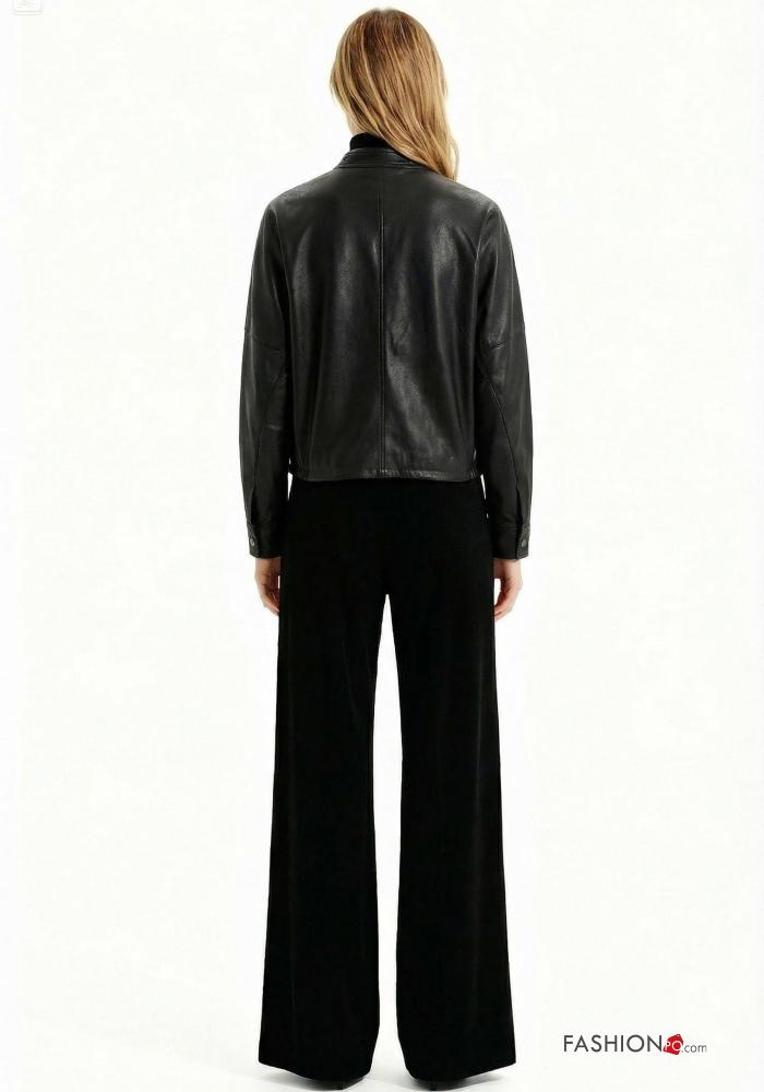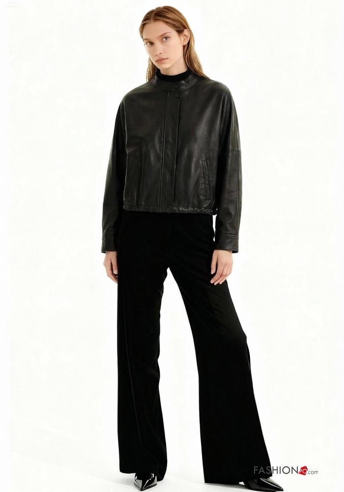 Home > Vêtements > Manteaux & Vestes > Veste manches longues faux cuir col rond à boutons avec coulisse