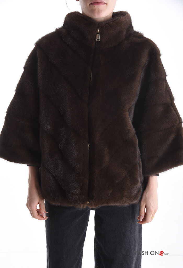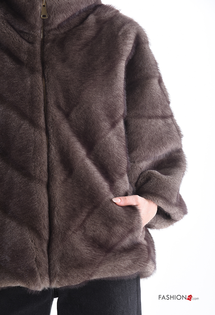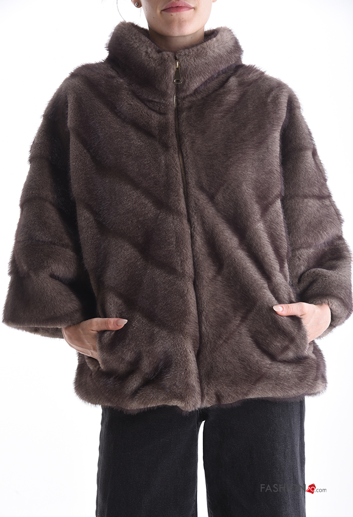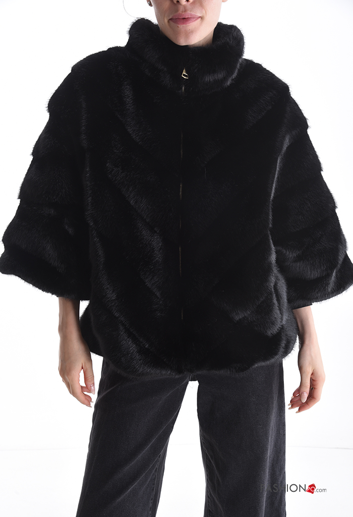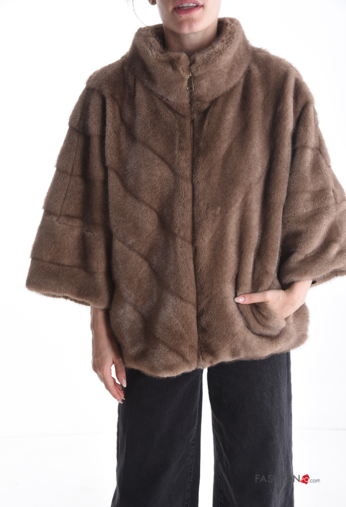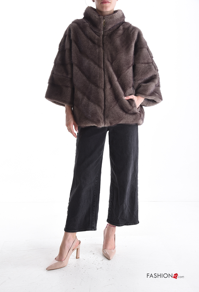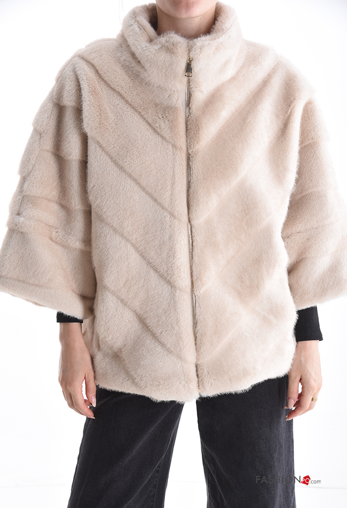 Manteau avec poches à col roulé avec doublure avec fermeture éclair