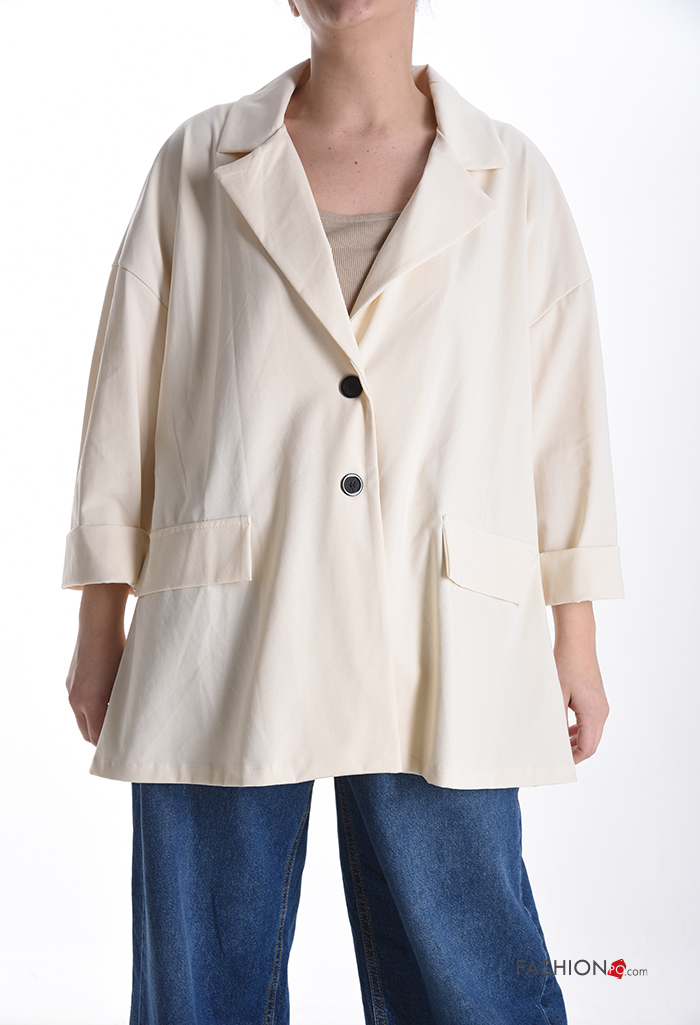 Veste en Coton oversize manches longues à boutons sans doublure