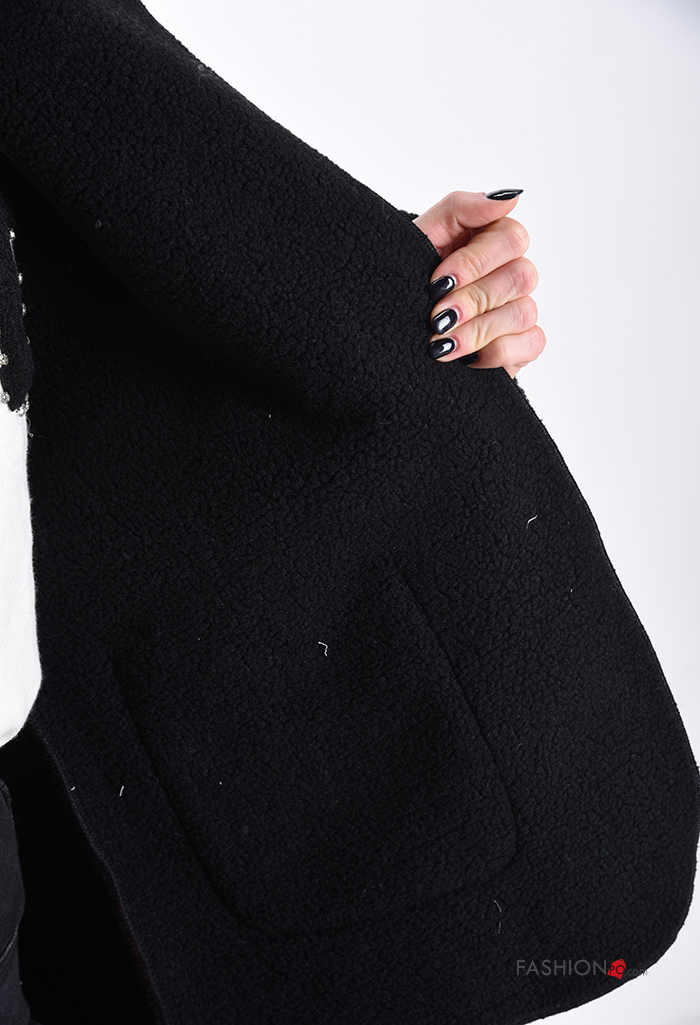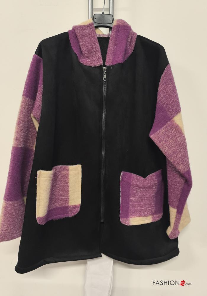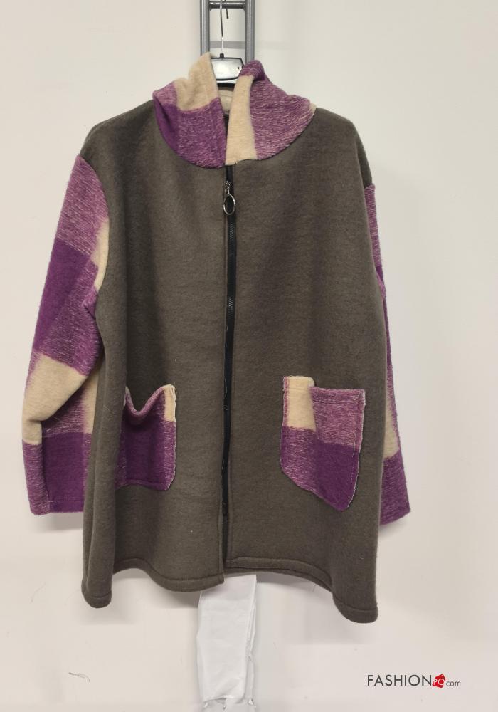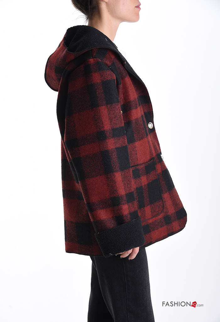 Manteau en Mélange de Laine Motif tartan à capuche à col en V sans doublure à boutons avec poches