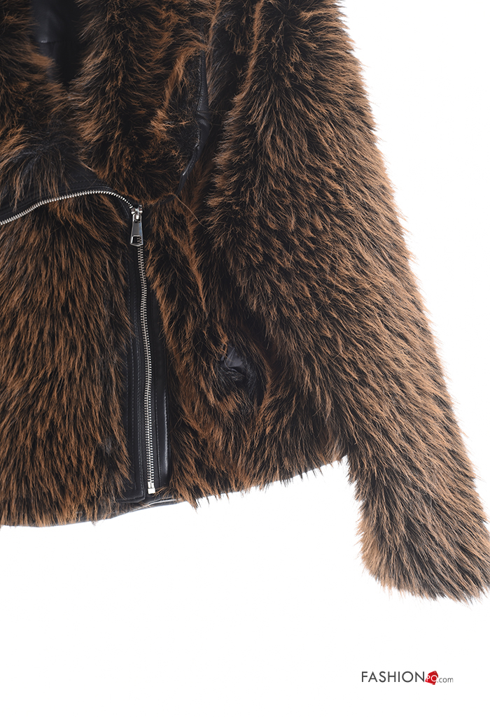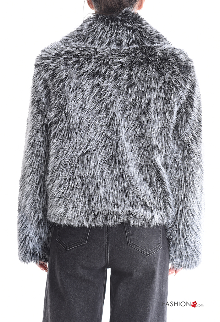 Veste fourrure synthétique à collet avec fermeture éclair avec doublure avec poches
