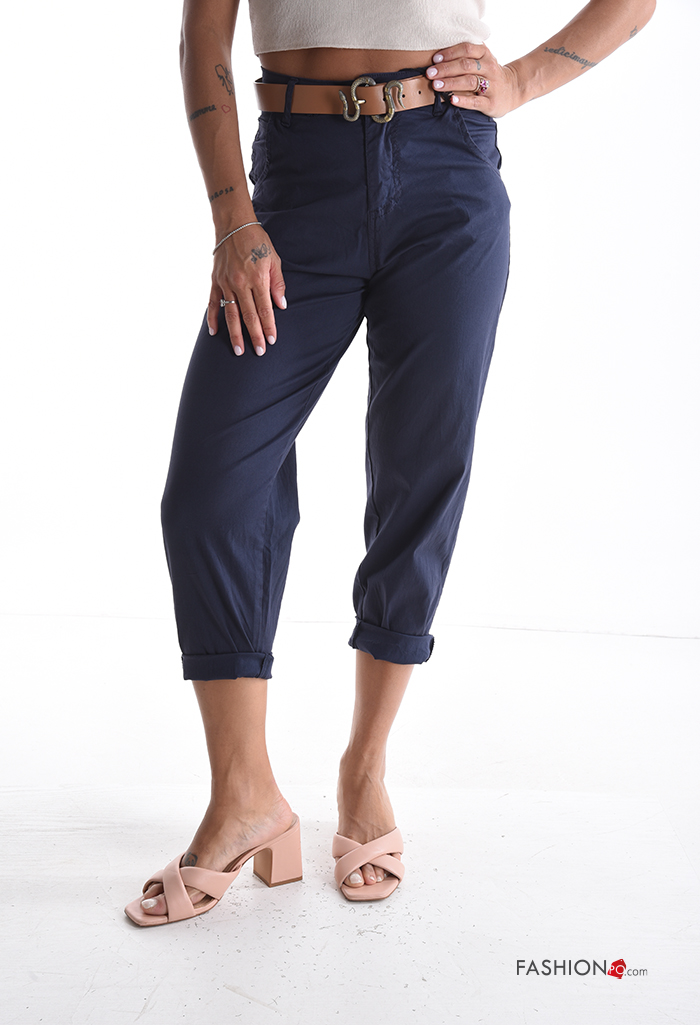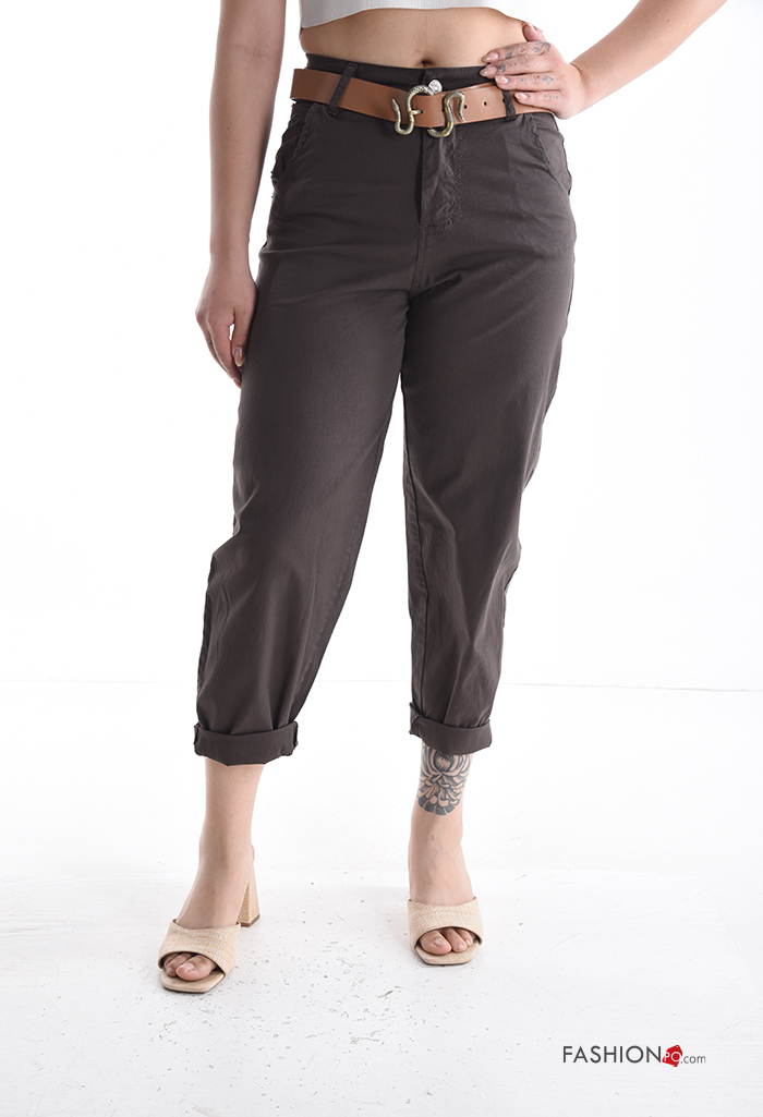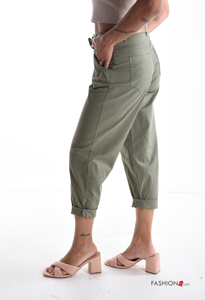 Home > Vêtements > Pantalons > Pantalon en Coton à boutons avec ceinture avec fermeture éclair avec poches