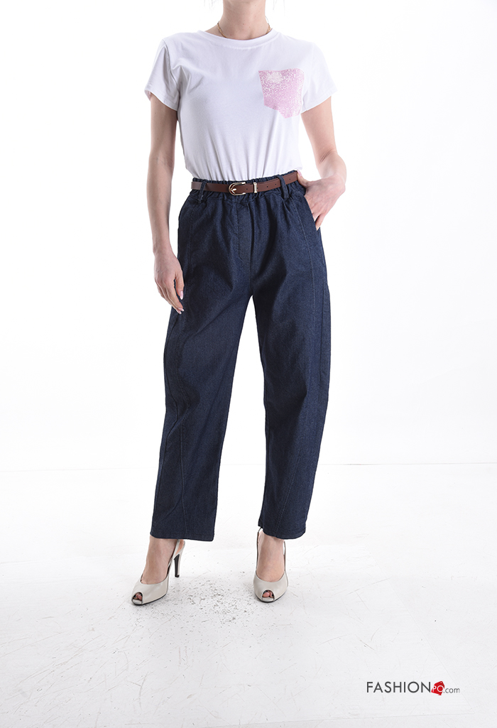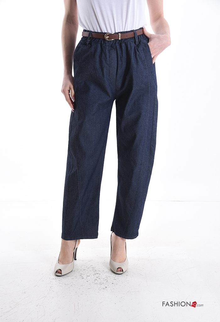 Pantalon en Coton en denim avec ceinture avec poches