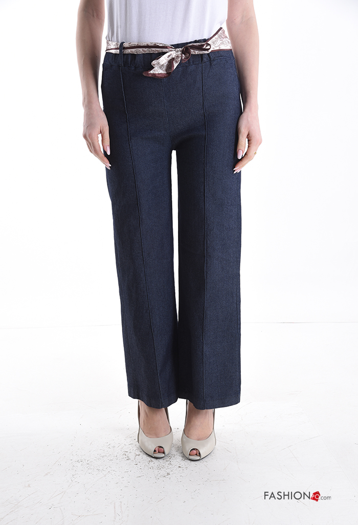Home > Vêtements > Pantalons > Pantalon en Coton en denim wide leg avec ruban