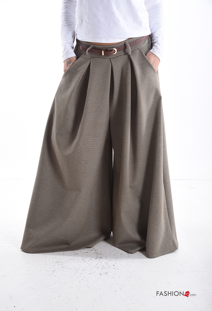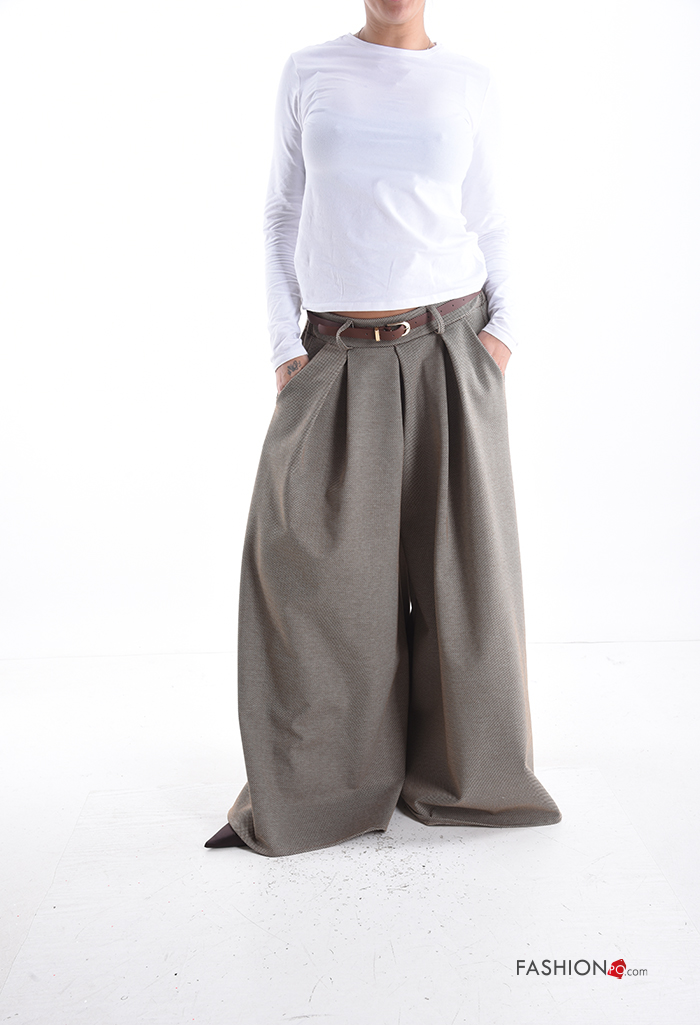 Pantalon wide leg avec ceinture avec poches