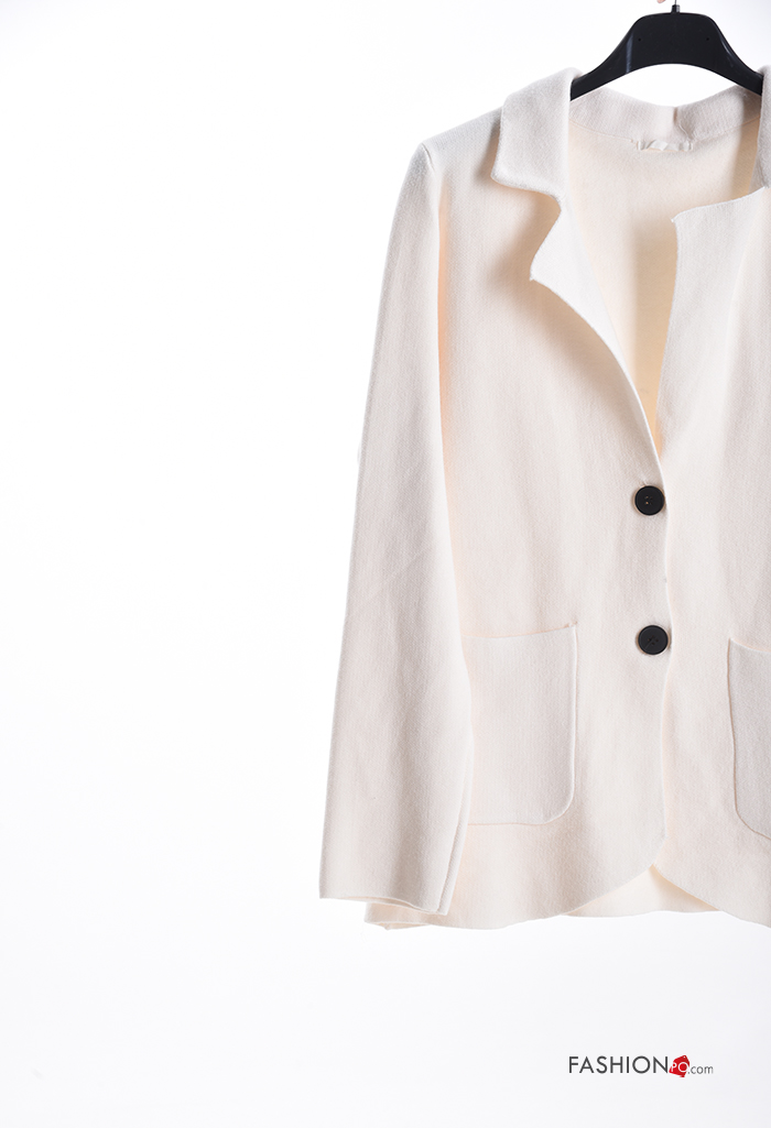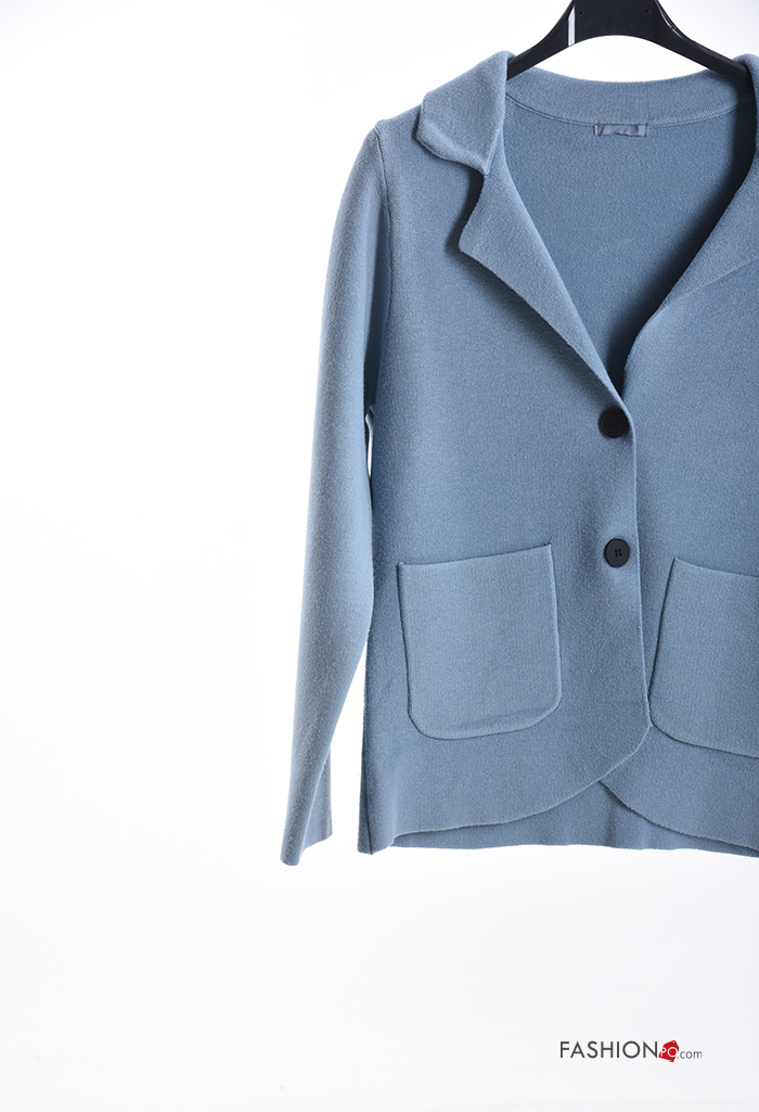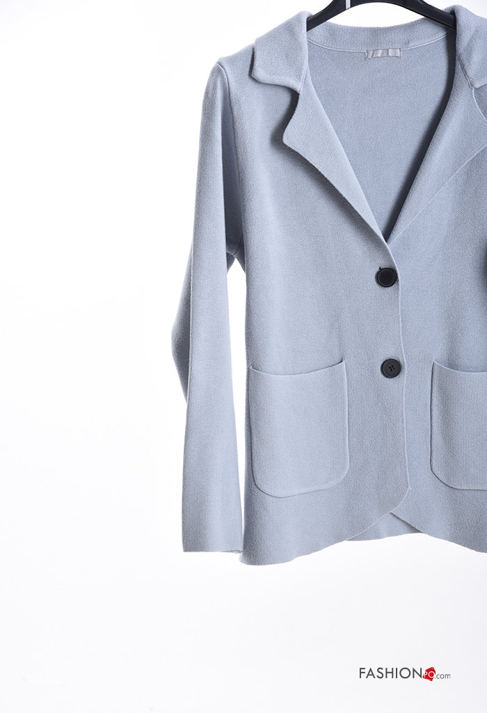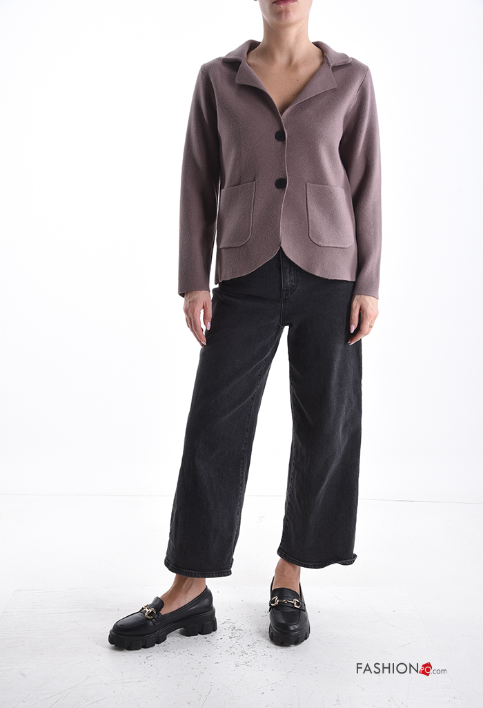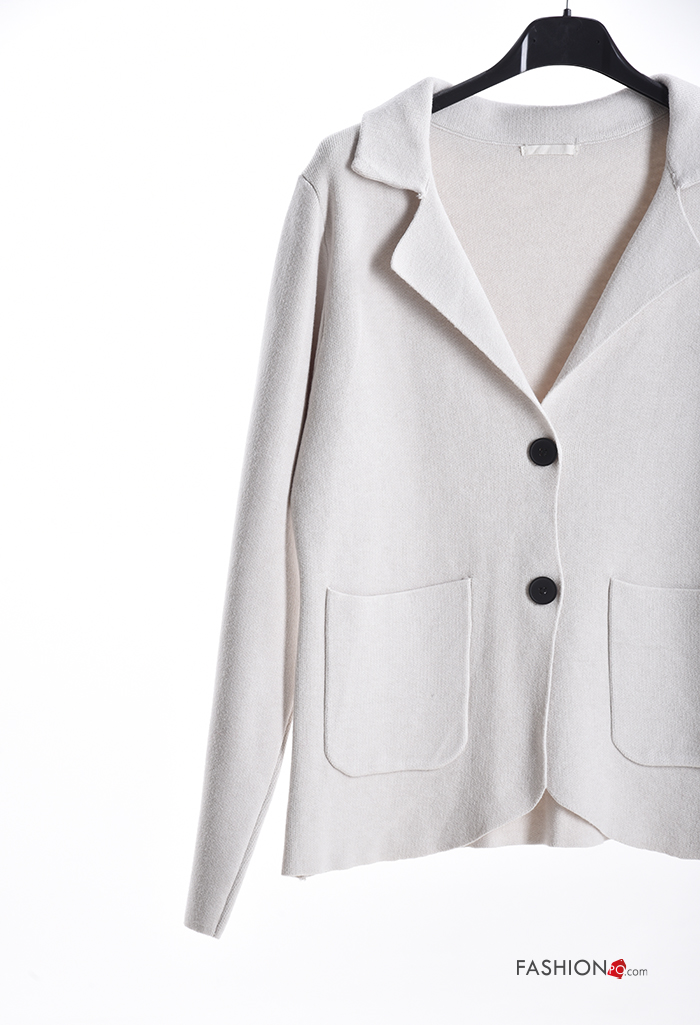 Gilet manches longues à collet à boutons avec poches