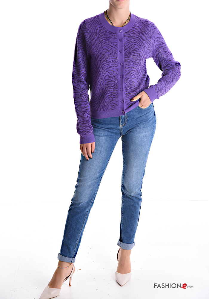 Home > Vêtements > Pulls & Gilets > Gilet lurex col rond Imprimé animalier à boutons