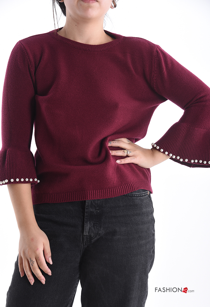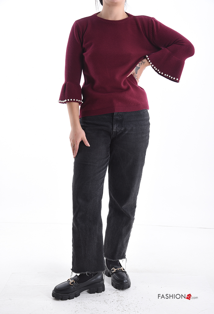 Home > Vêtements > Pulls & Gilets > Pull col rond avec des perles manches à trois-quarts