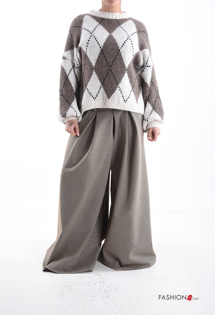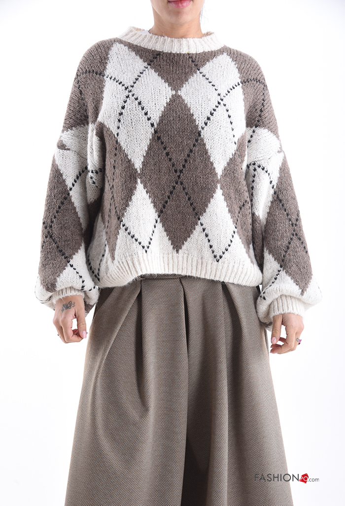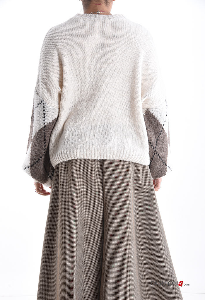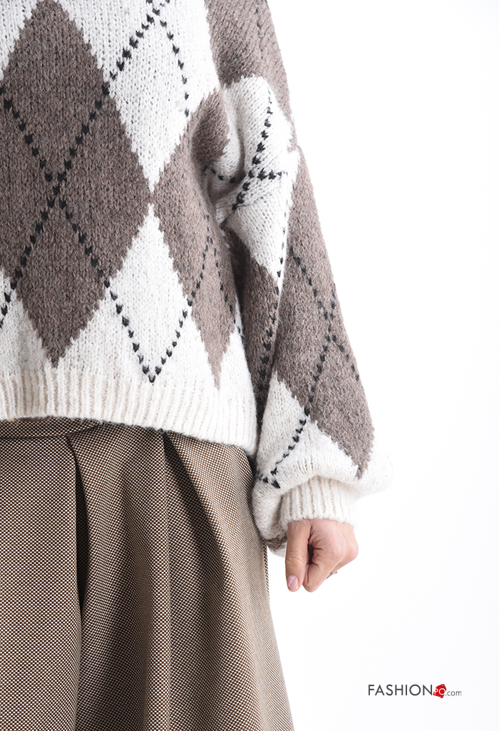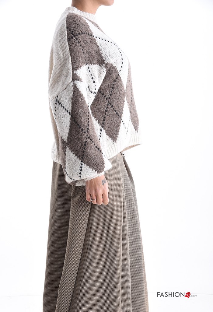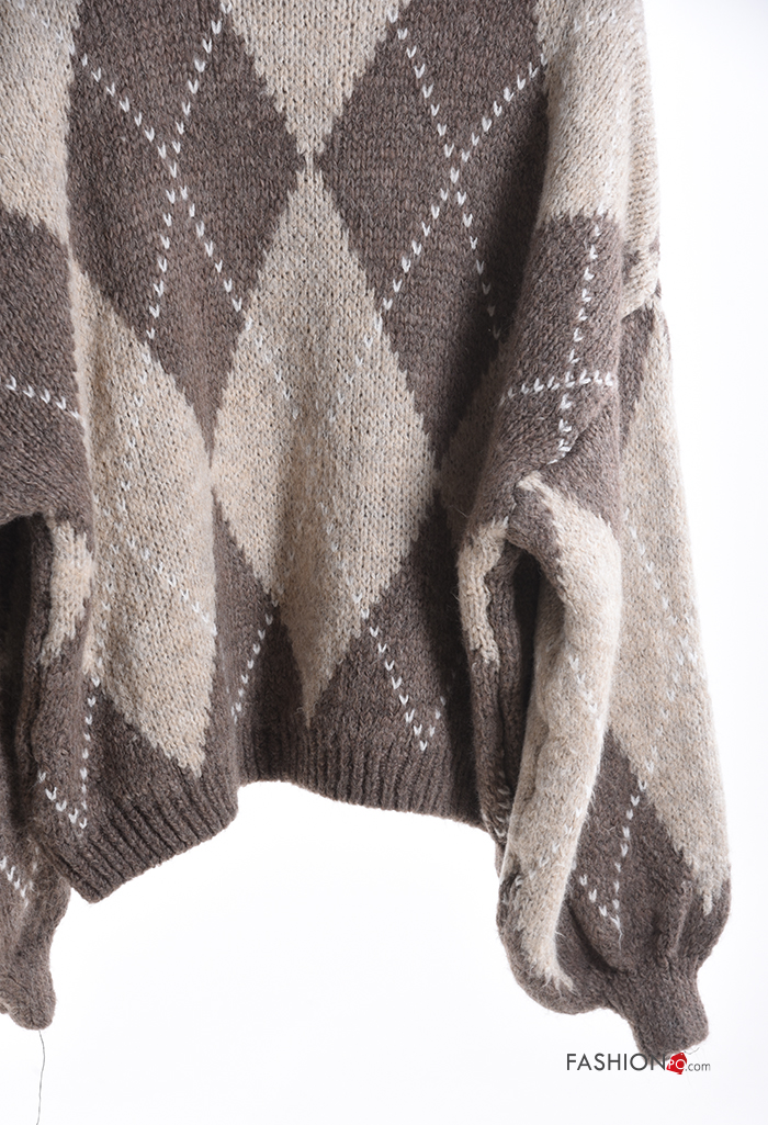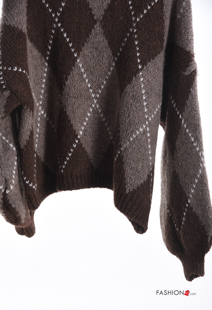 Pull en Mélange de Laine à Imprimé Géométrique