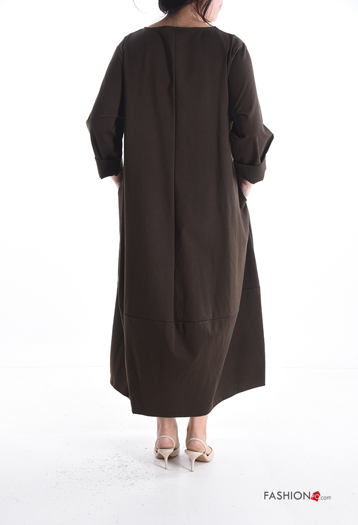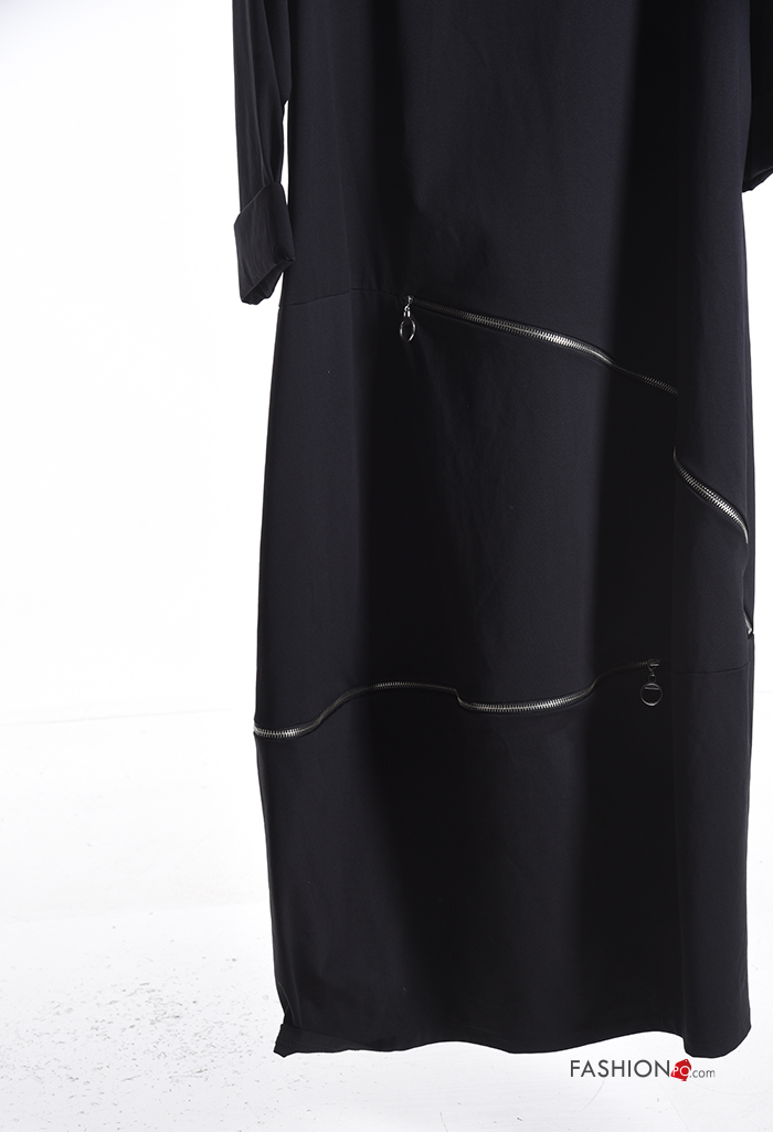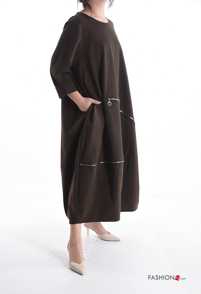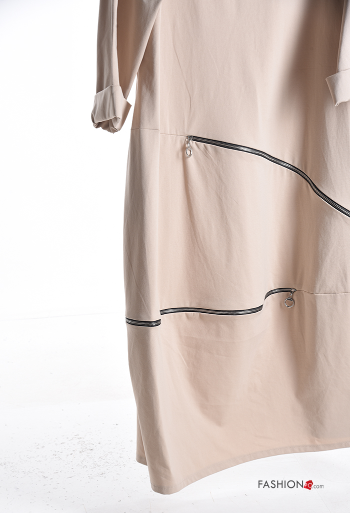 Robe en Coton manches longues oversize col rond avec poches avec fermeture éclair