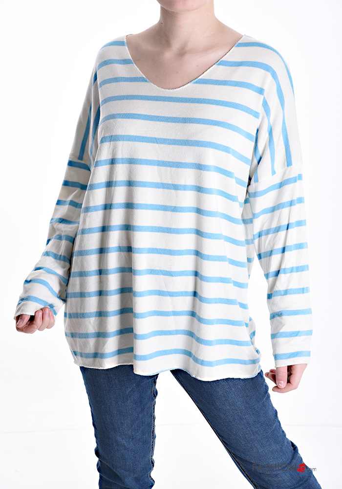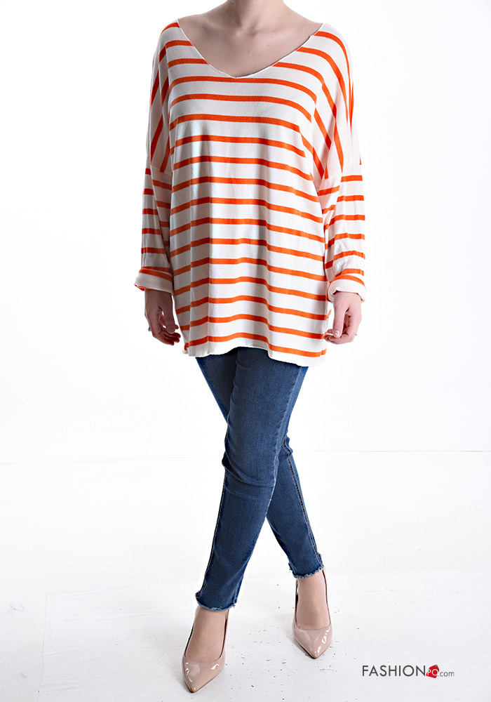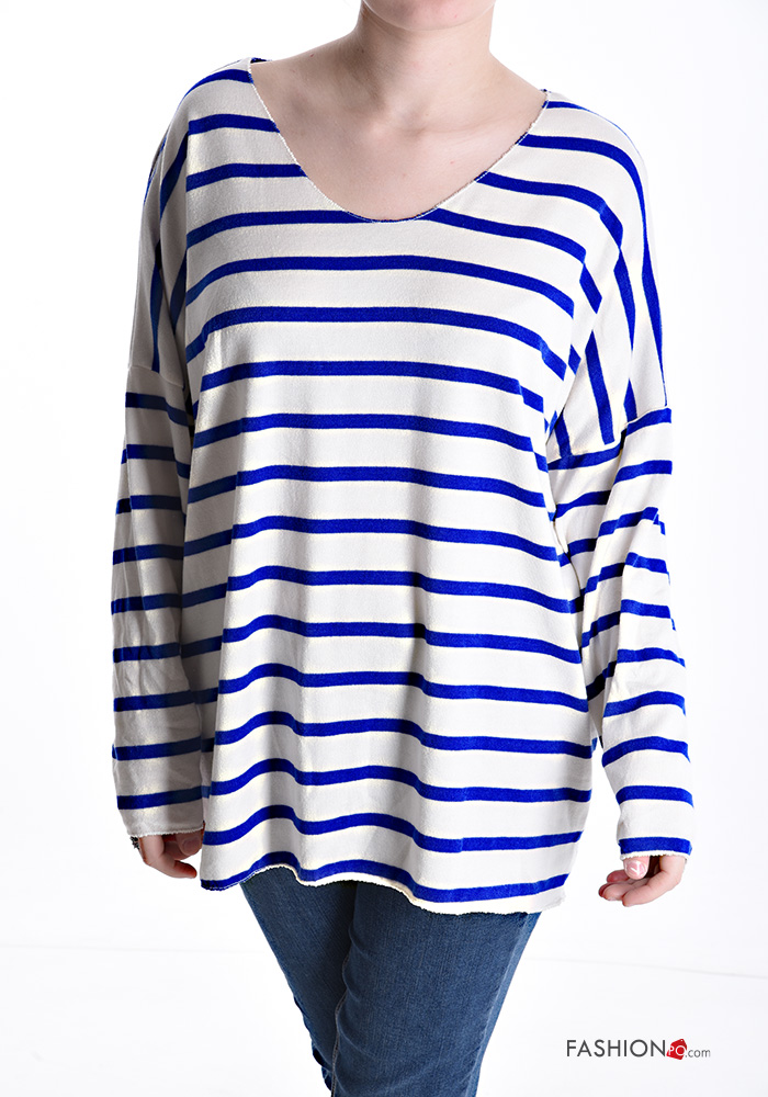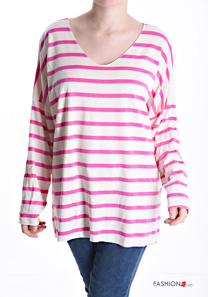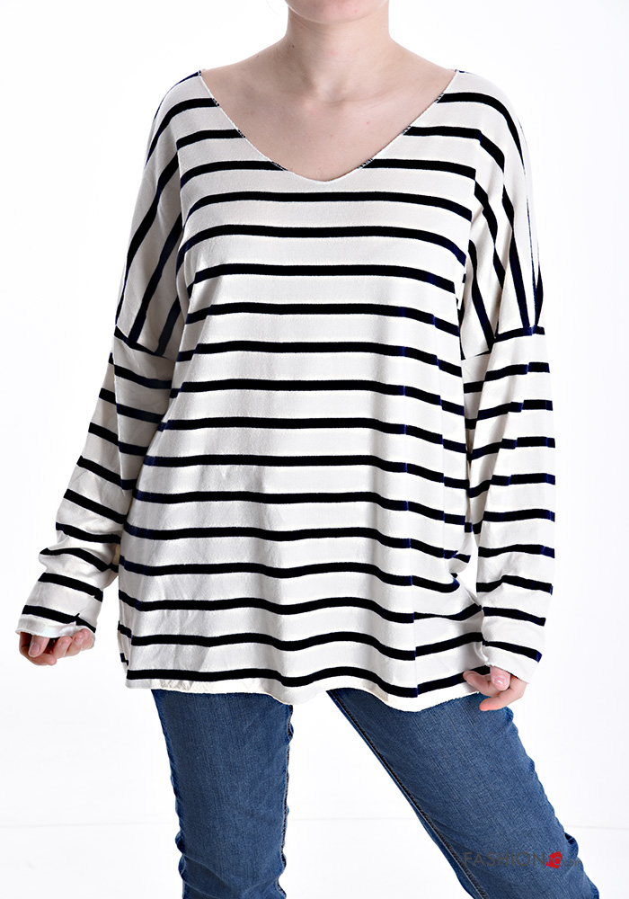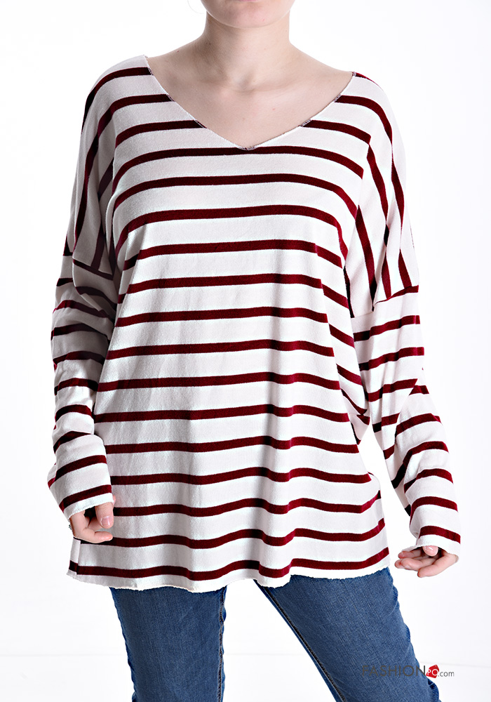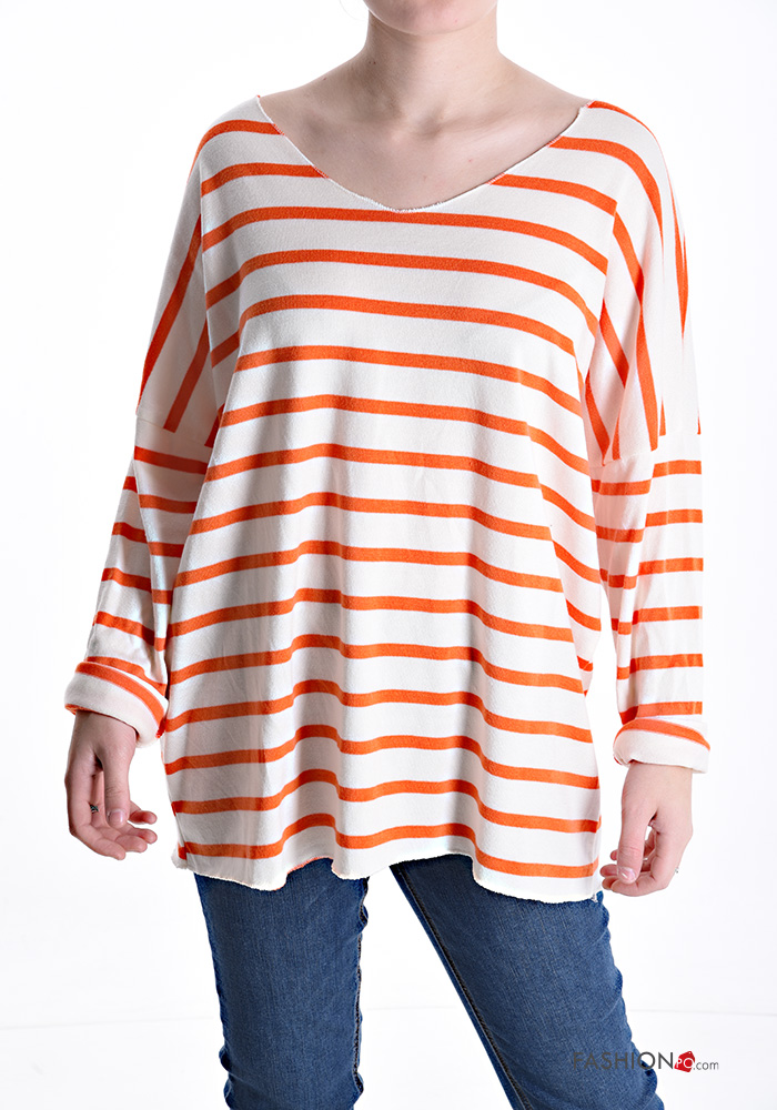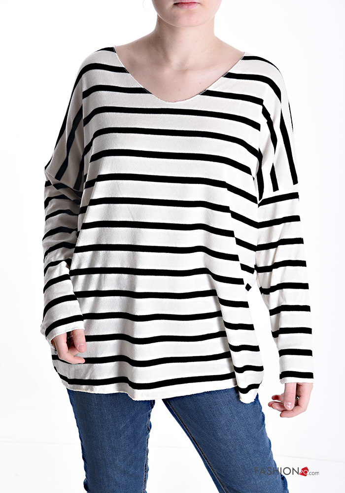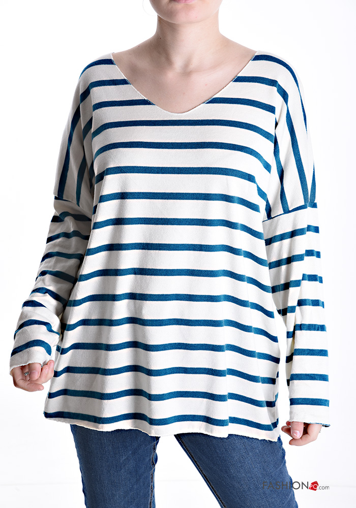 Home > Vêtements > T-shirts & Tops > T-shirt à manches longues Imprimé à rayures à col en V