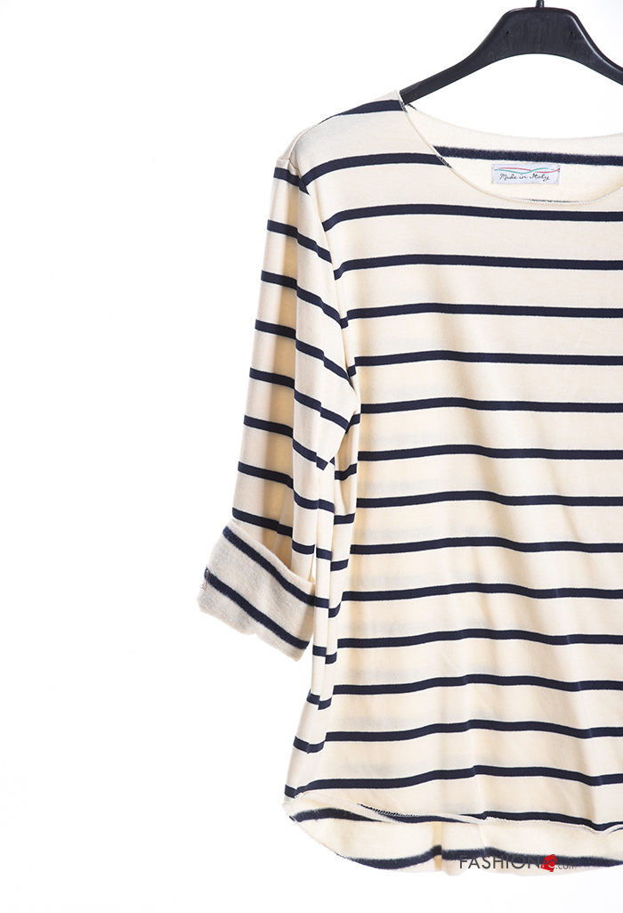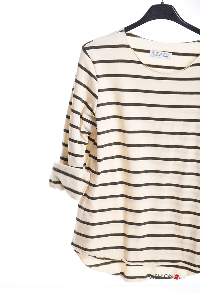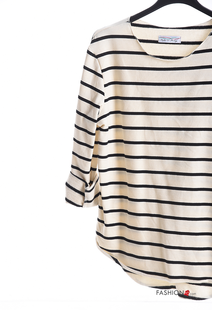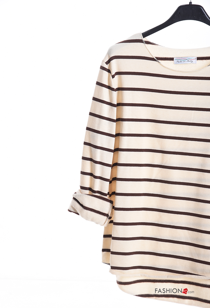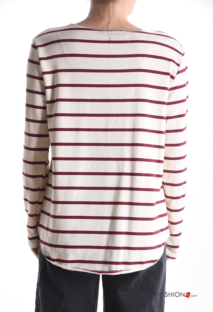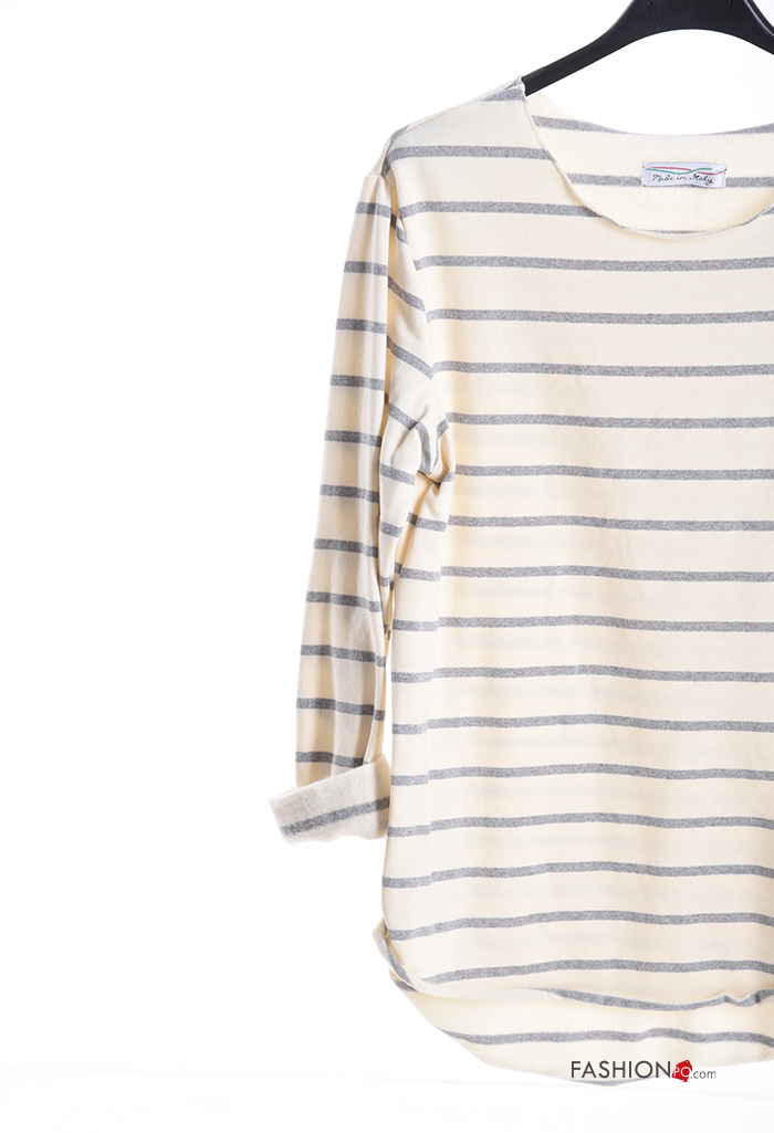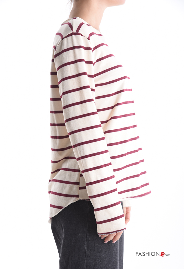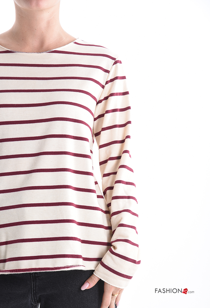 Home > Vêtements > T-shirts & Tops > T-shirt à manches longues en Coton molleton brossé col rond Imprimé à rayures