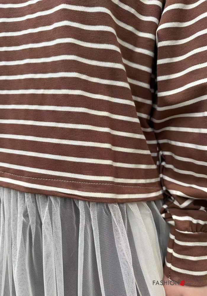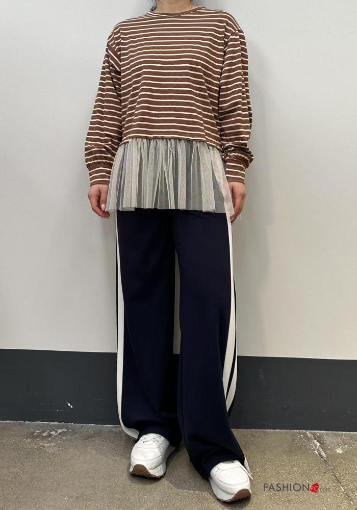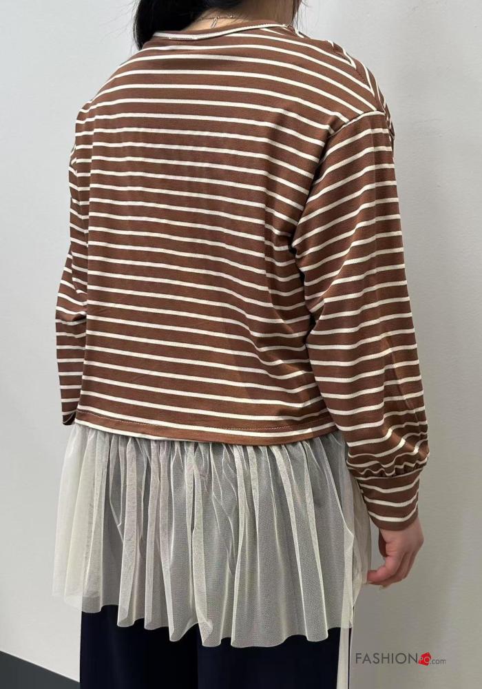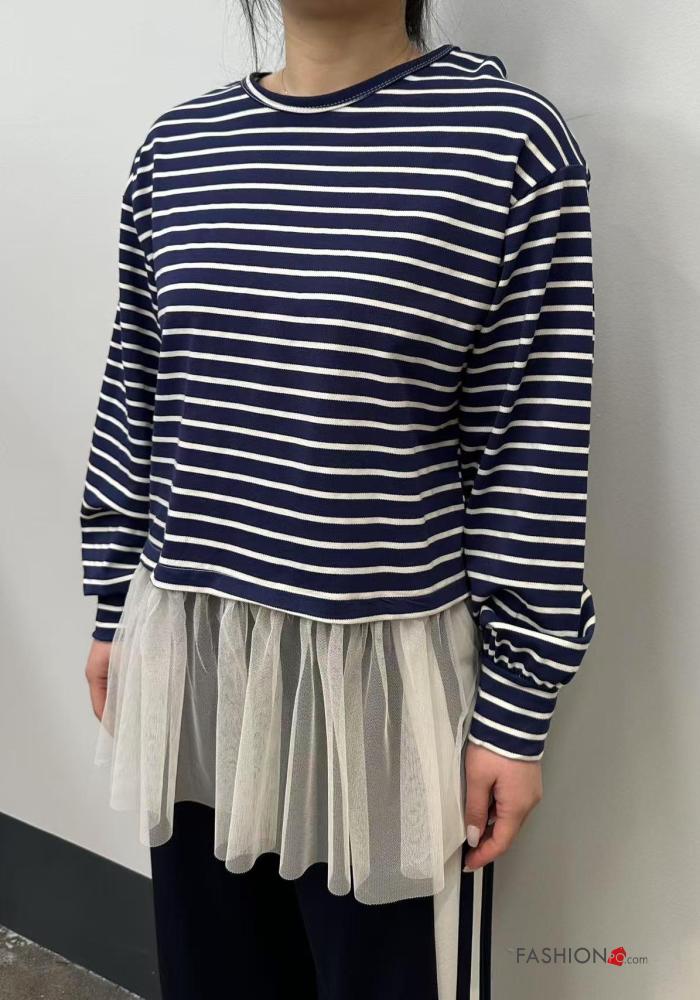 T-shirt à manches longues en Coton tulle col rond Imprimé à rayures