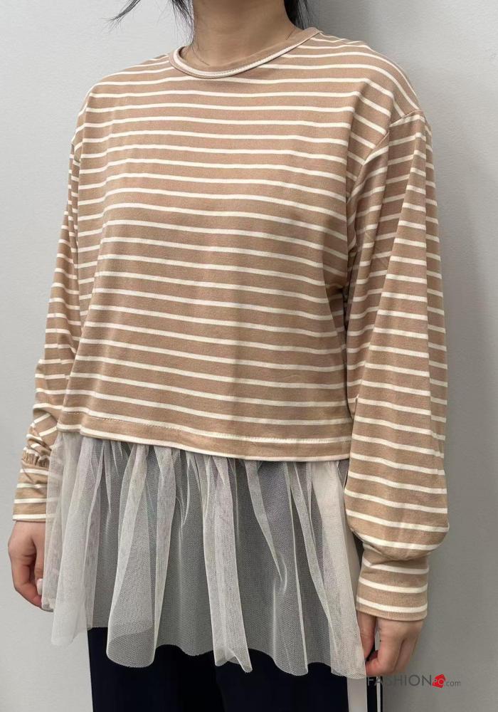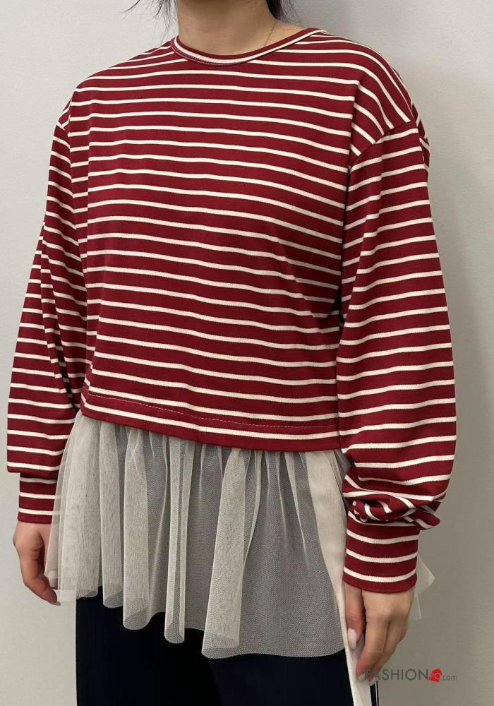 Home > Vêtements > T-shirts & Tops > T-shirt à manches longues en Coton tulle col rond Imprimé à rayures