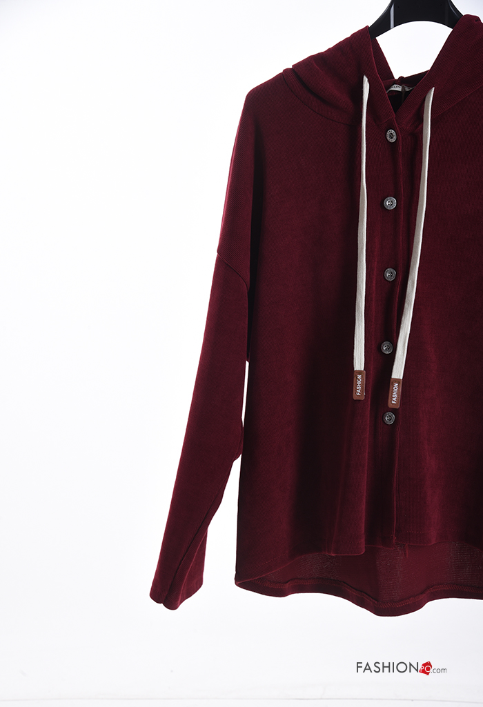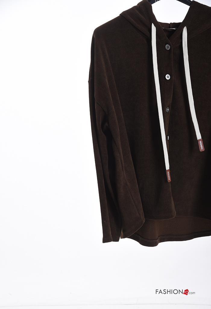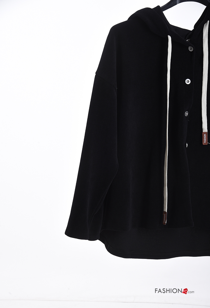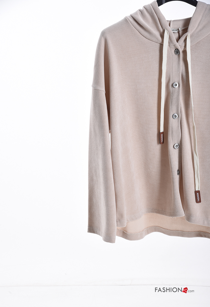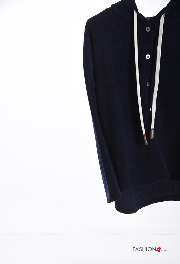 T-shirt à manches longues à boutons à capuche