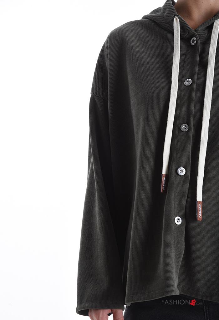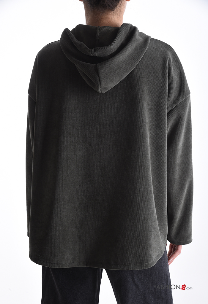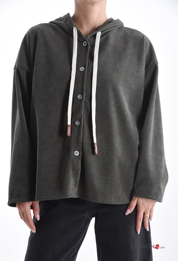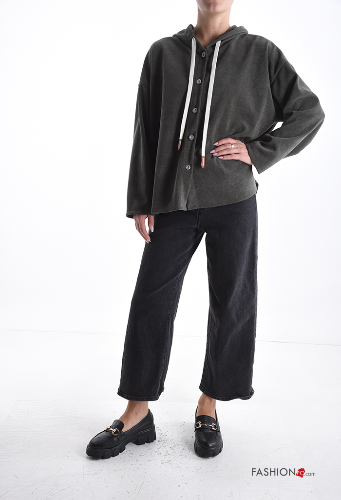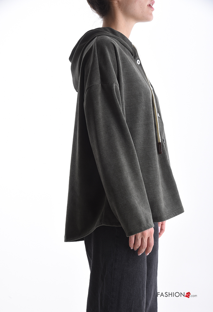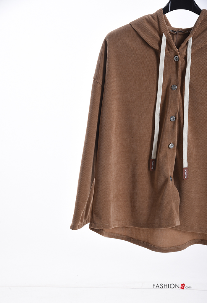 T-shirt à manches longues à boutons à capuche