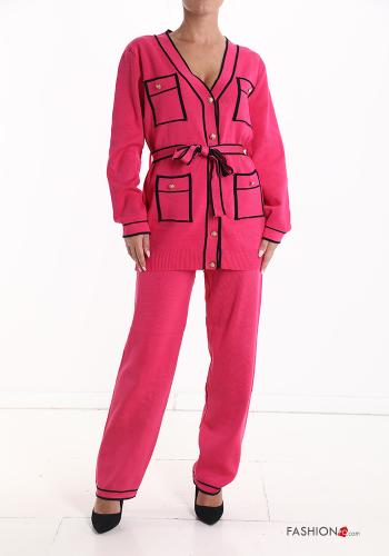 Ensemble coordonné manches longues lurex col rond à boutons avec poches
