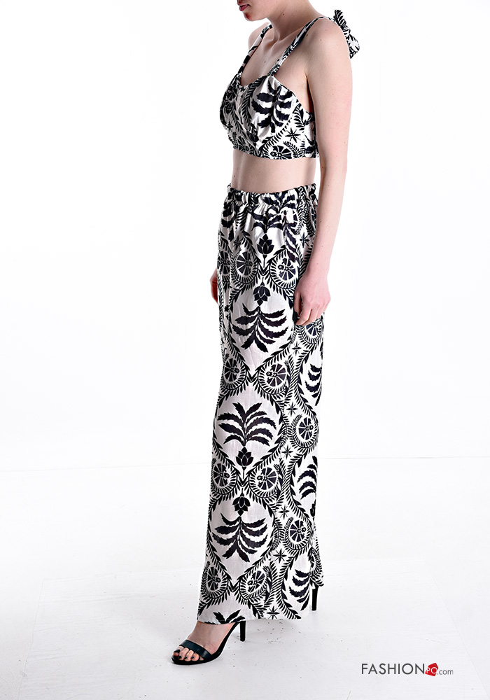 Tailleur en Coton wide leg ajustable courte Imprimé abstrait avec poches avec élastique