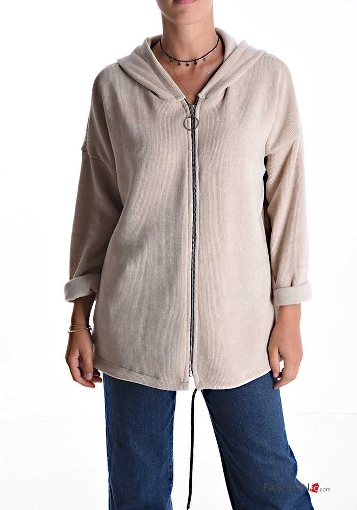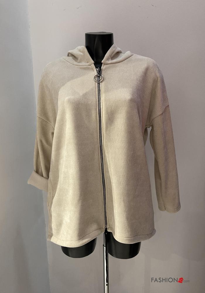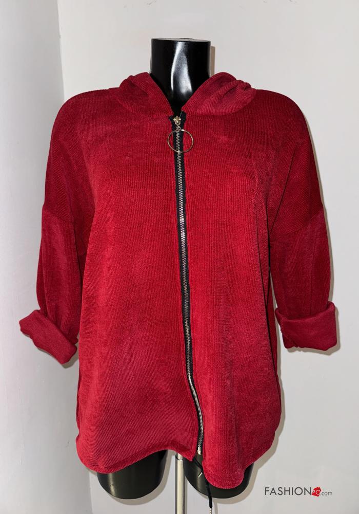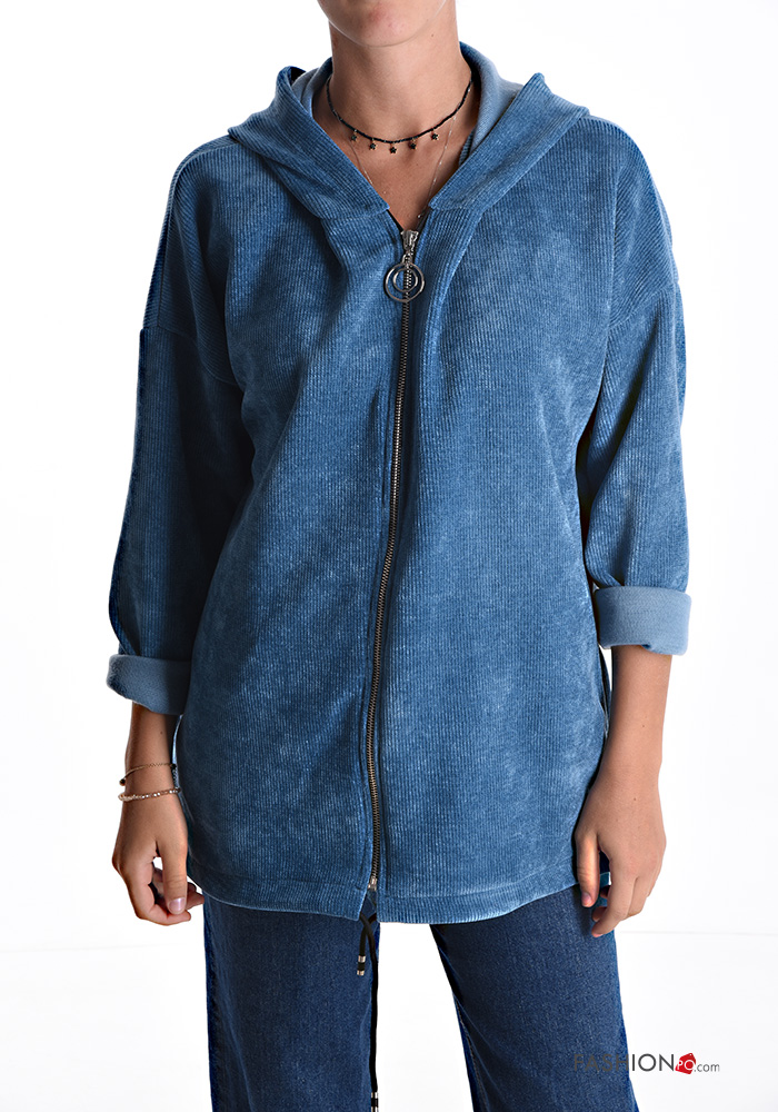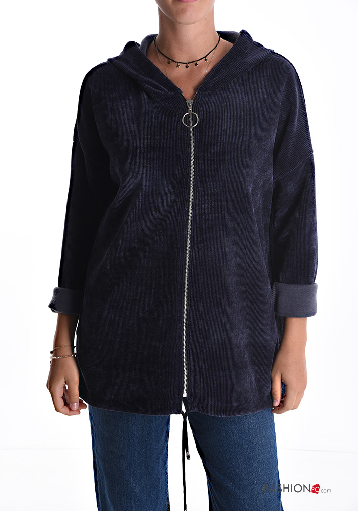 Sweatshirt en Velours avec poches à capuche avec fermeture éclair