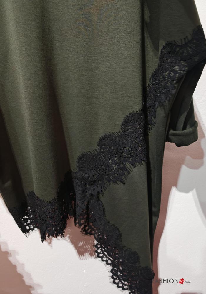 Sweatshirt manches longues asymétrique col rond détail dentelle