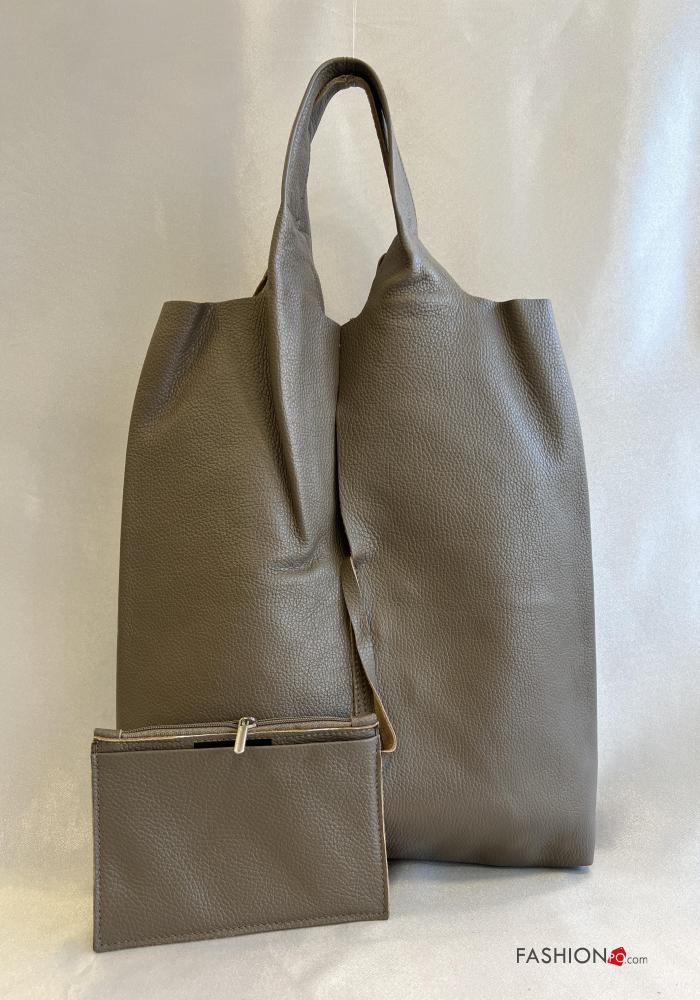 Borsa a spalla in Vera pelle taglio vivo con portafoglio