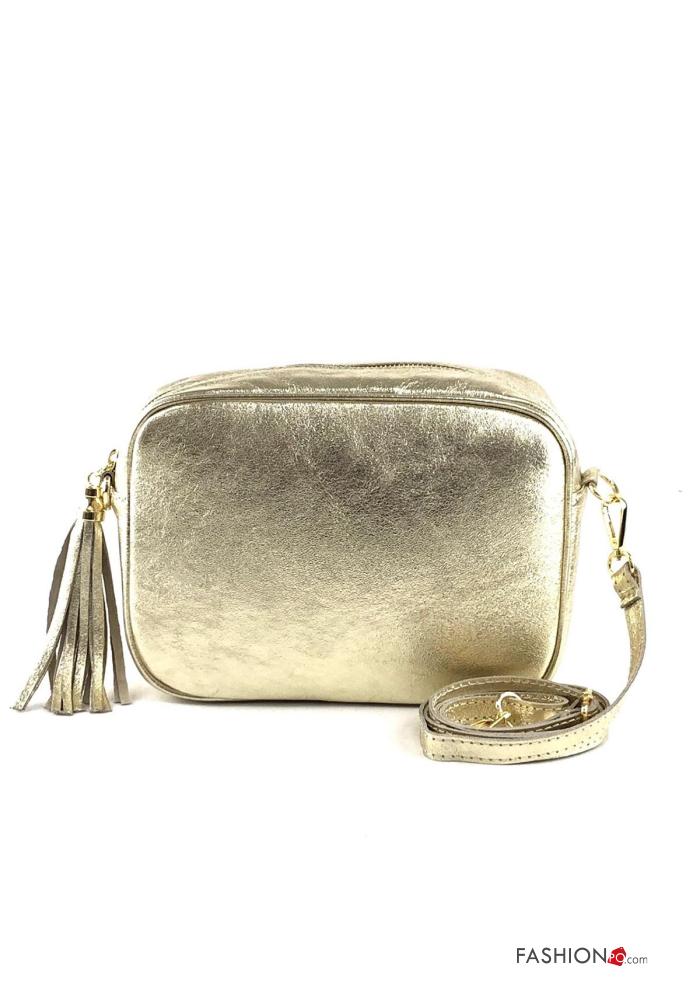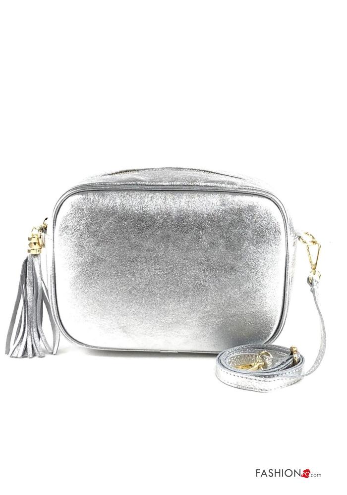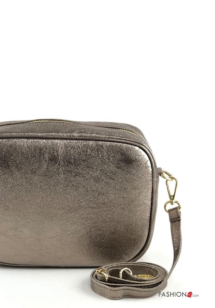 Borsa in Vera pelle metallizzato con zip con tracolla