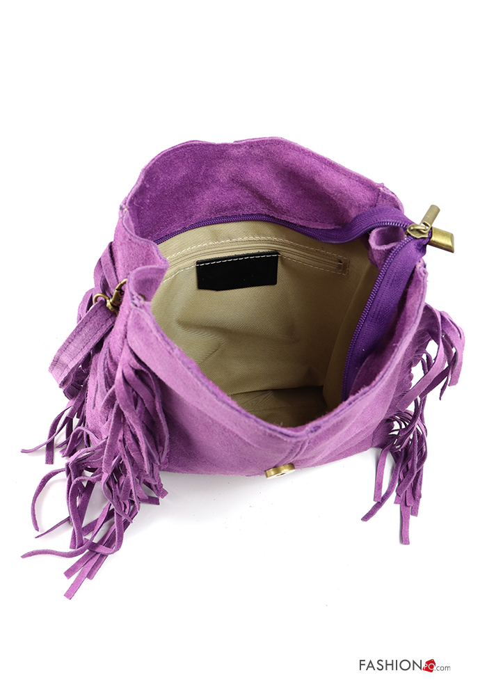 Borsa in Vera pelle camoscio con frange con zip con tracolla