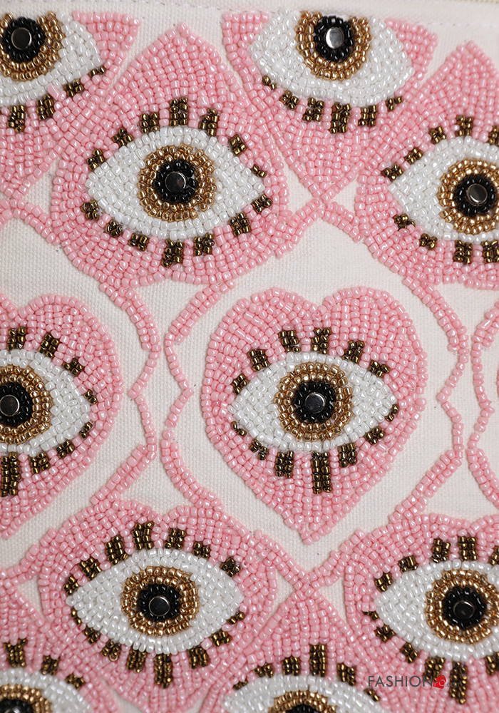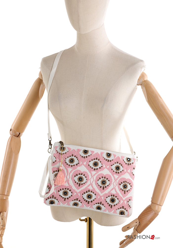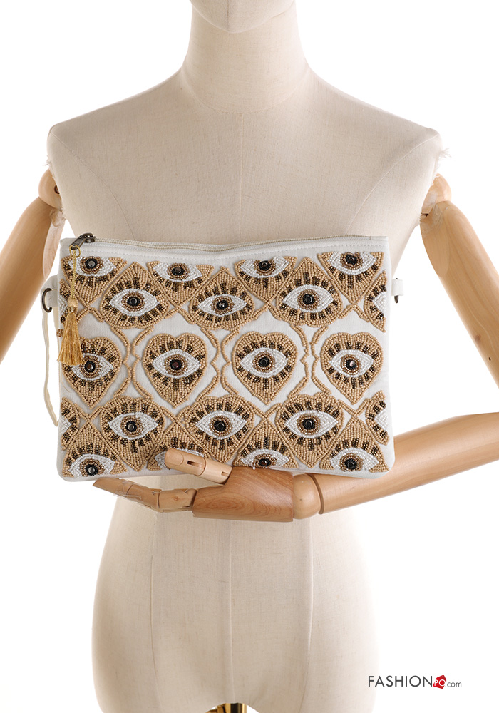 Pochette in Cotone Fantasia ricamata con zip con tracolla