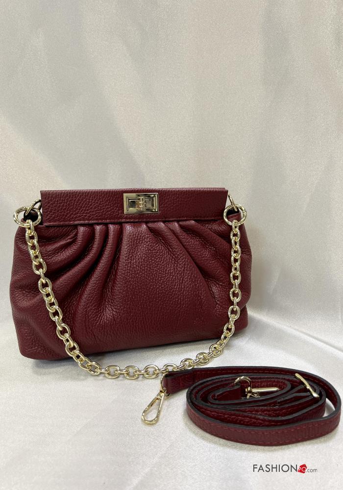 Pochette in Vera pelle con tracolla con catena