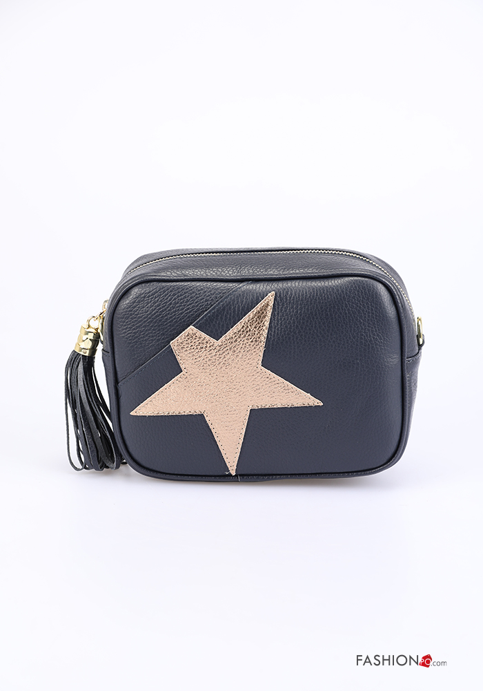 Pochette in Vera pelle con frange con zip con tracolla