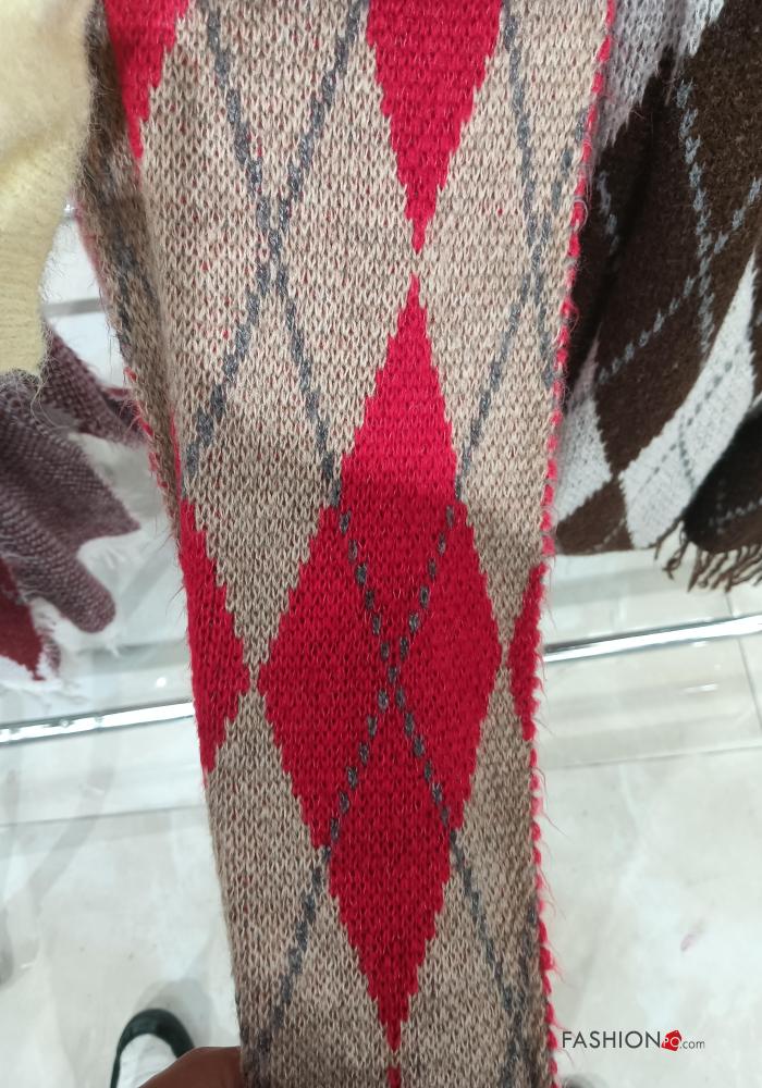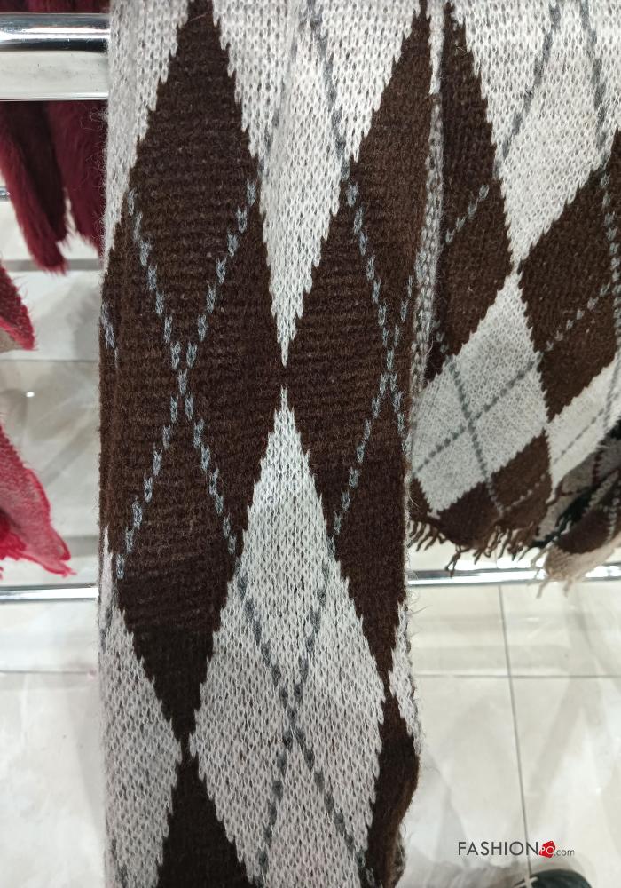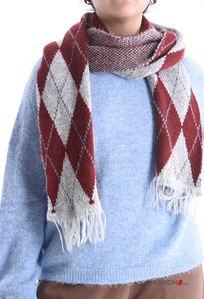 Sciarpa in Misto Lana Fantasia geometrica con frange