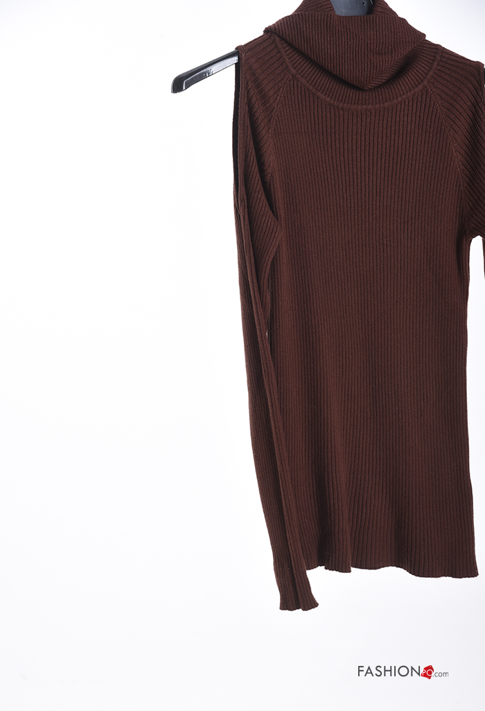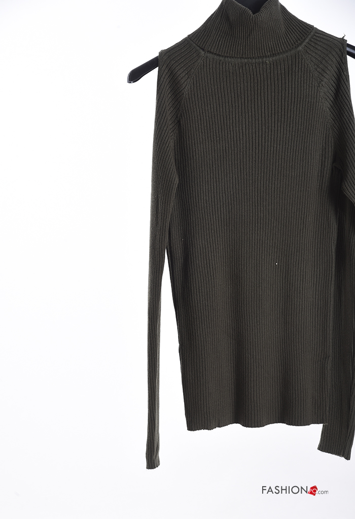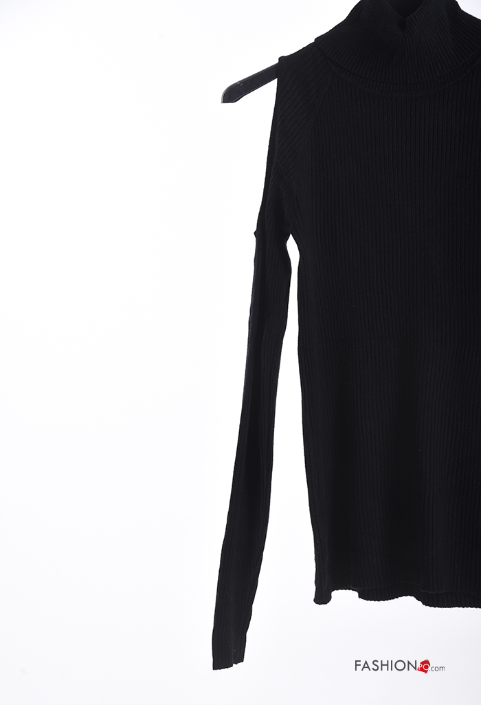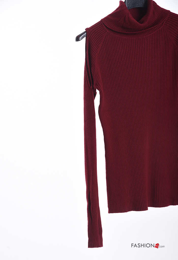 Maglione costine maniche lunghe a collo alto
