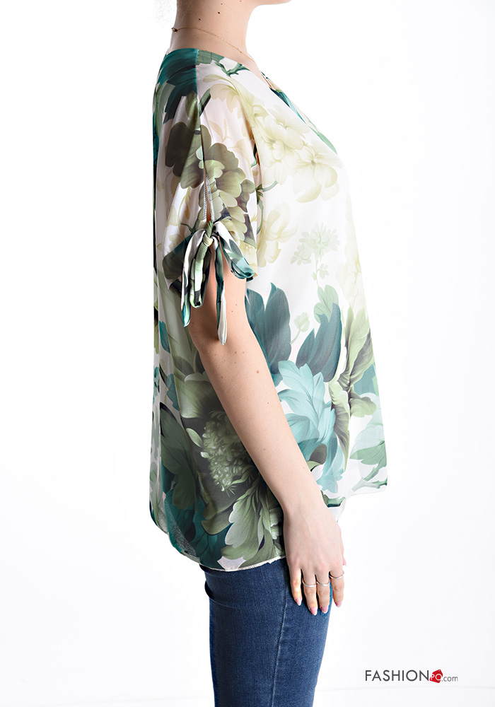 Home > Brands > LEDA MODA > Blusa maniche corte Fantasia floreale con fiocco