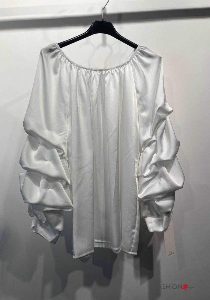 Blusa raso con balze con elastico