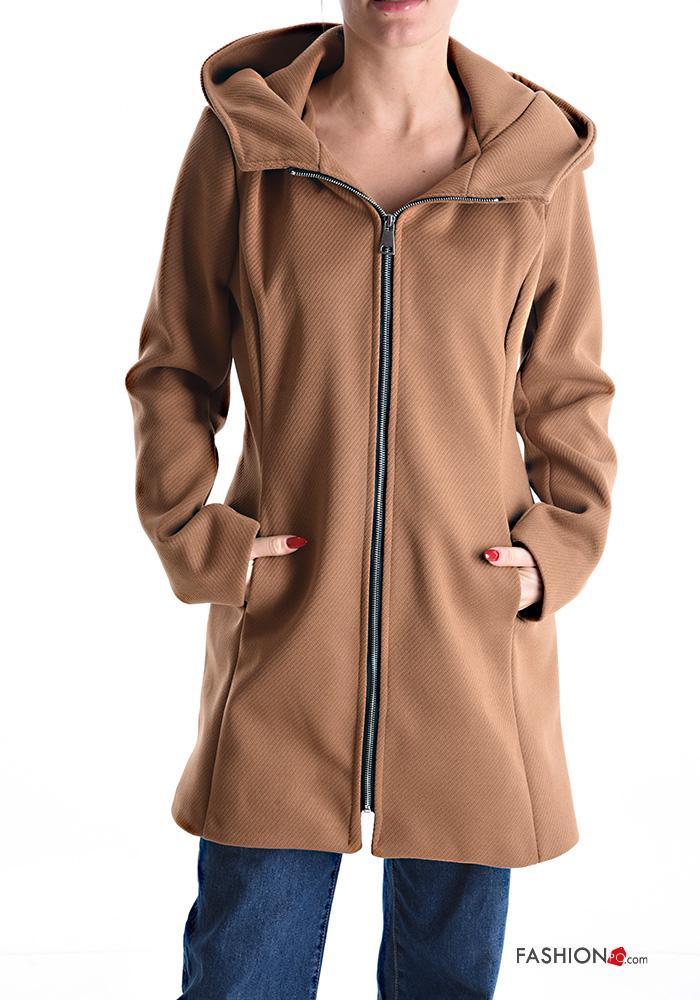 Home > Brands > ZHIMIAO MODA > Cappotto con zip con tasche con cappuccio