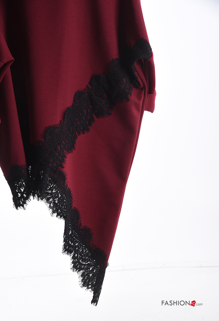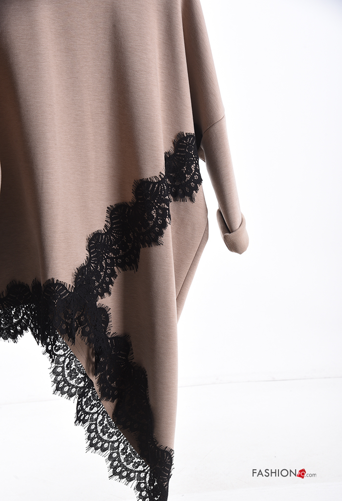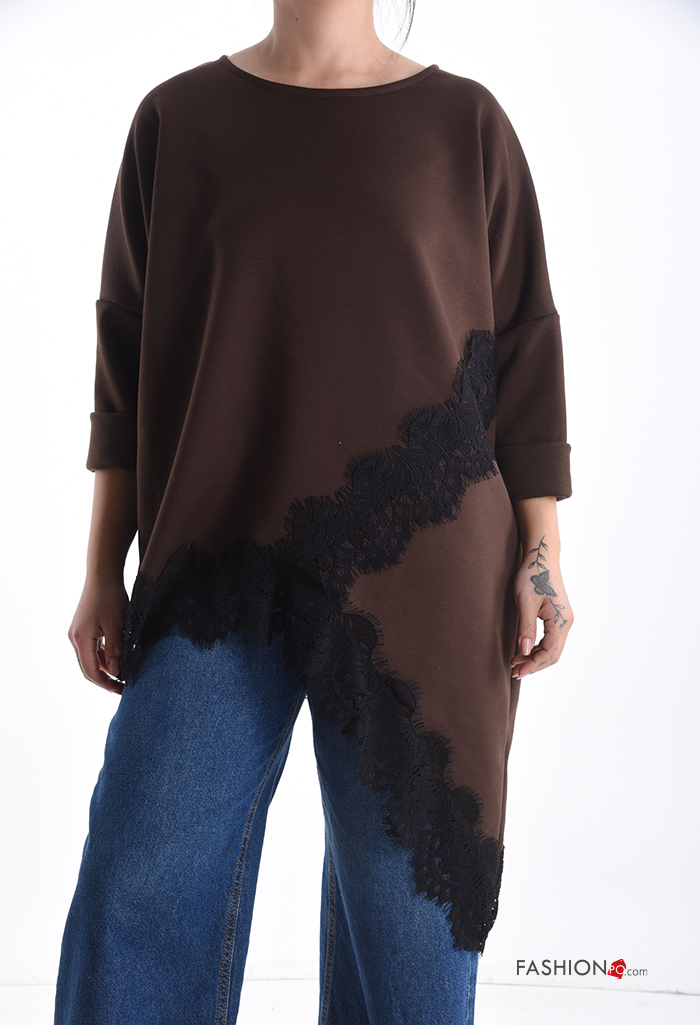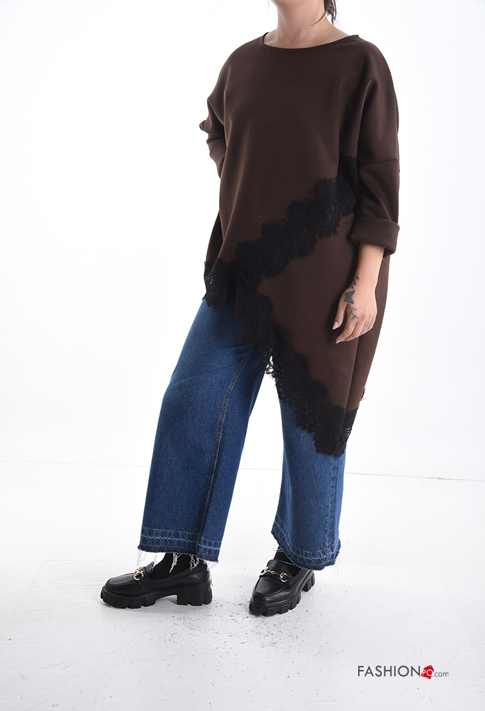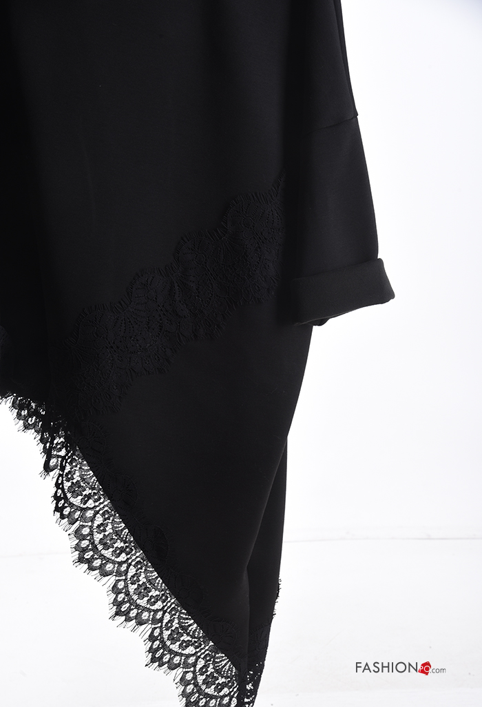 Felpa girocollo asimmetrico pizzo maniche lunghe
