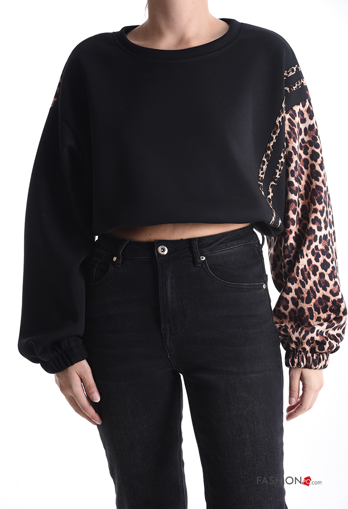 Felpa corto maniche lunghe girocollo Fantasia animalier con elastico