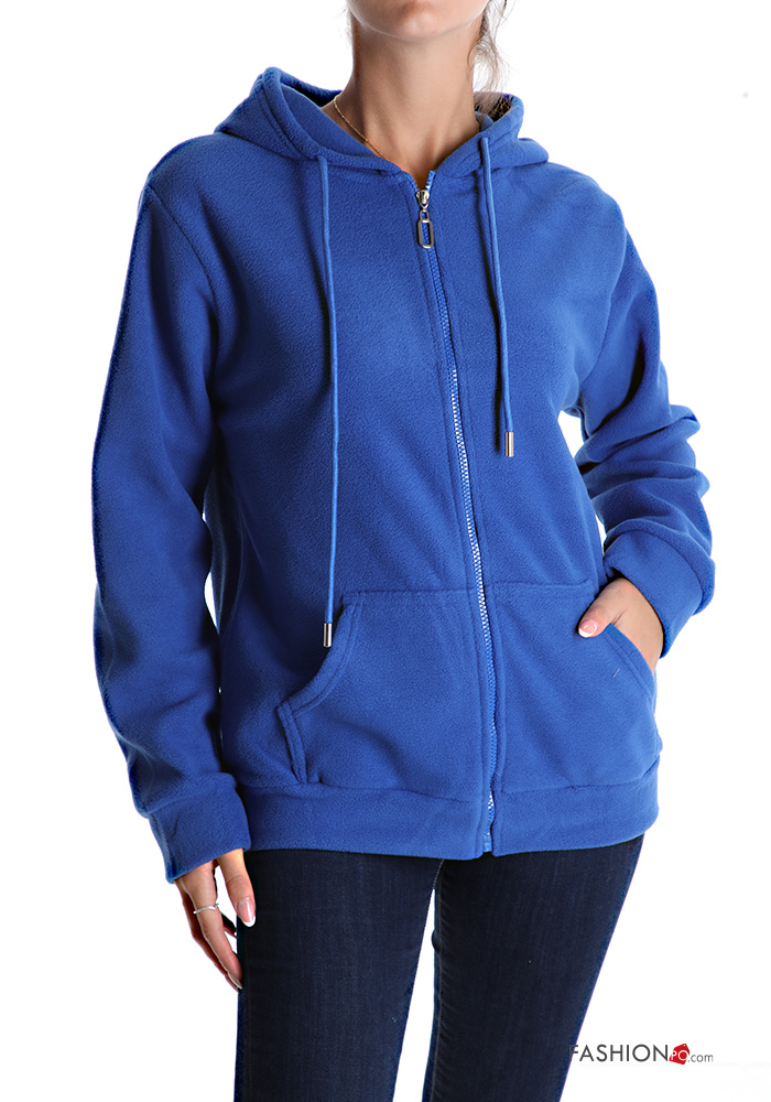 Felpa in Cotone con zip con tasche con cappuccio