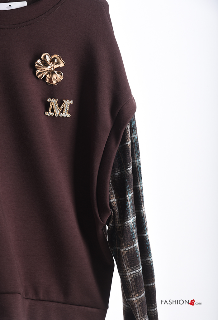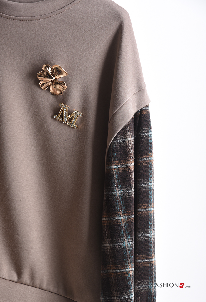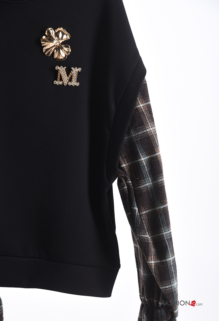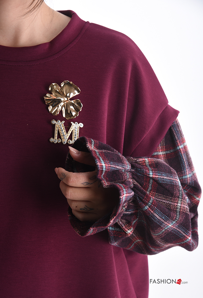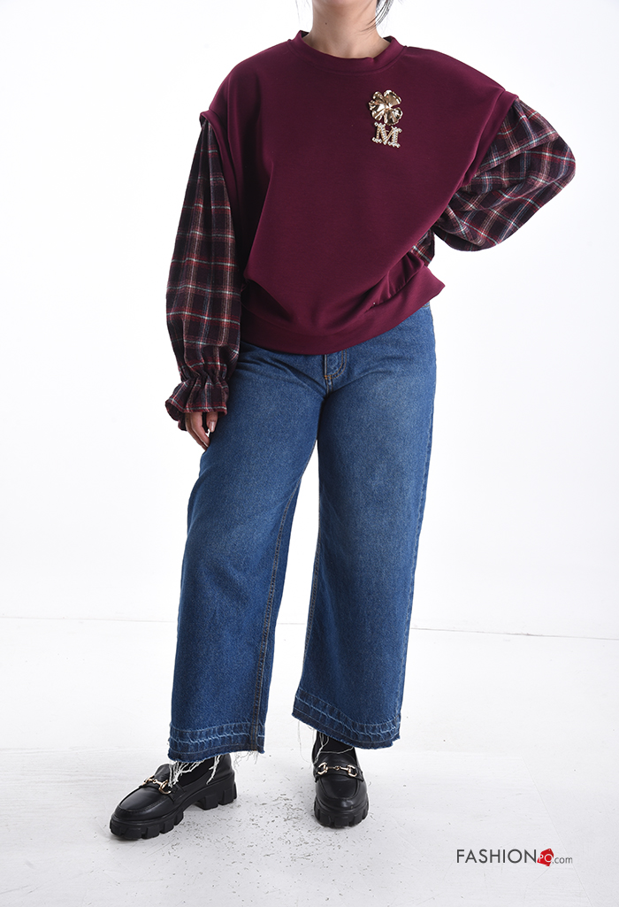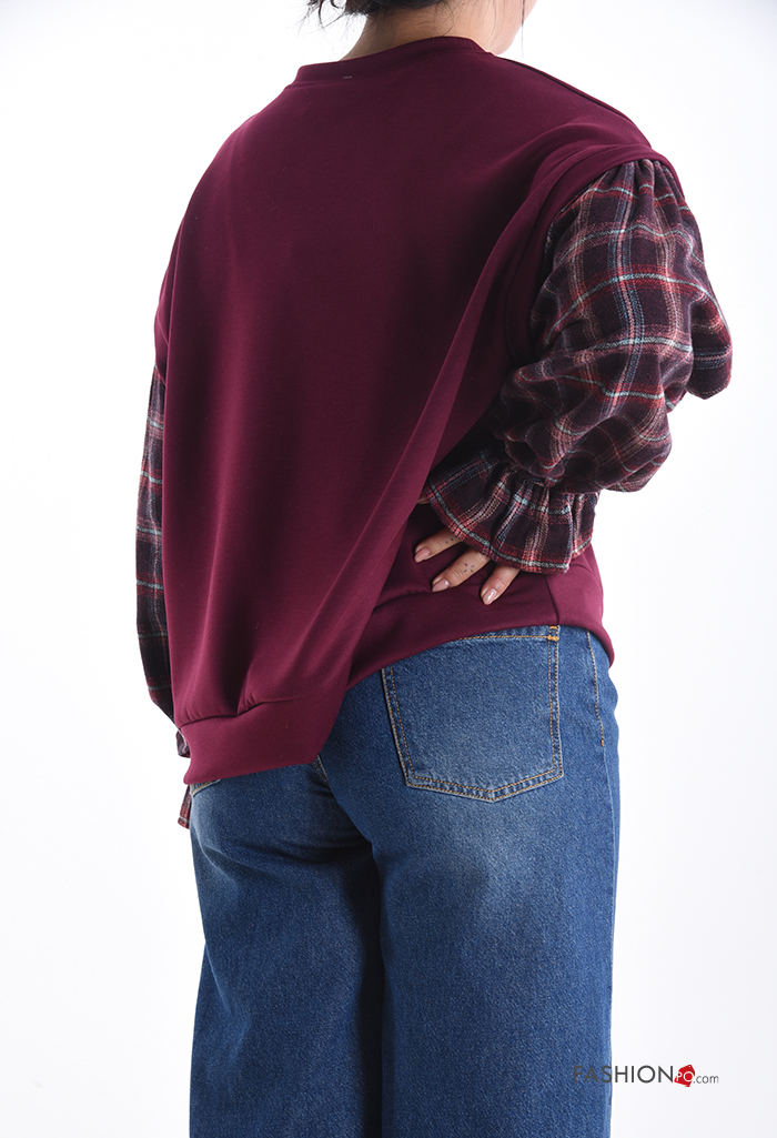 Felpa maniche lunghe maniche a palloncino girocollo Fantasia tartan