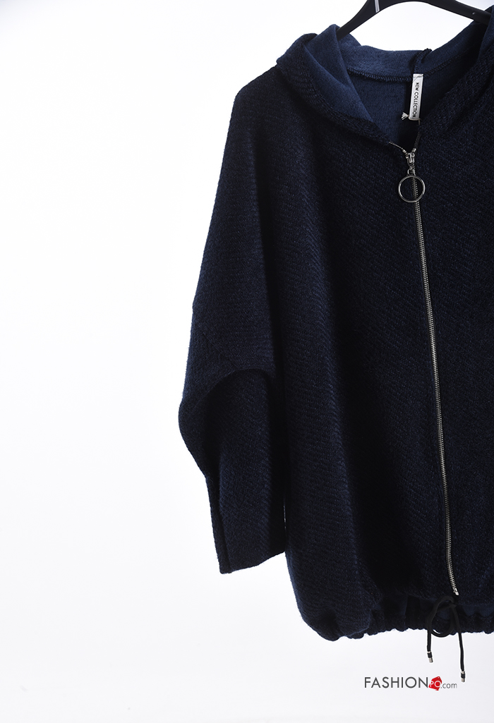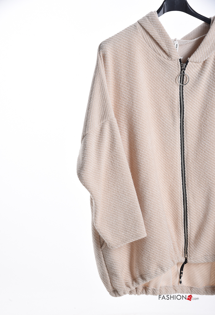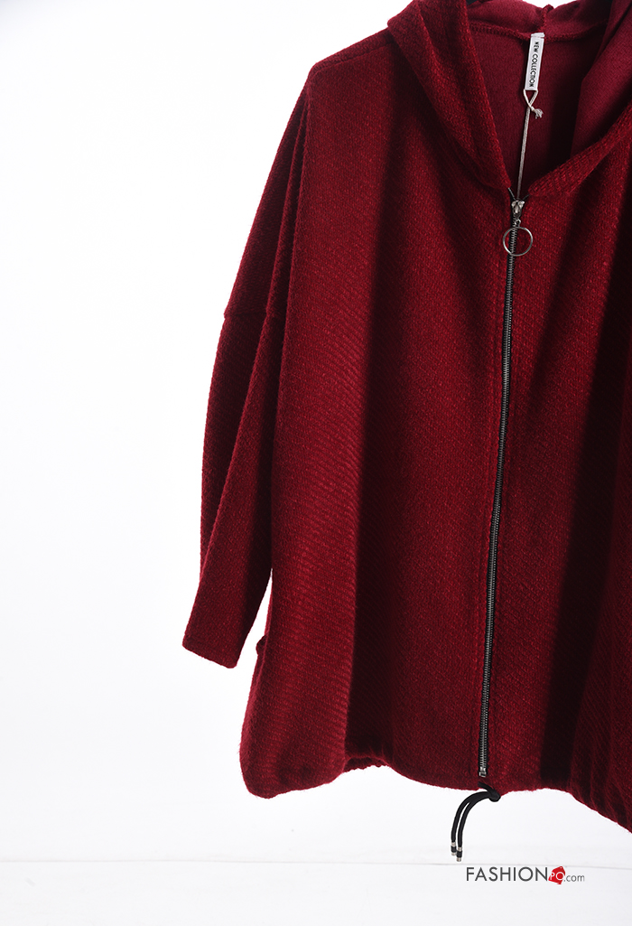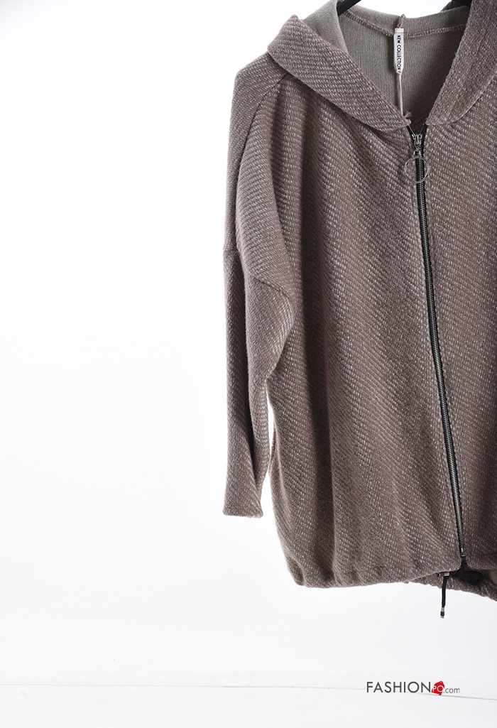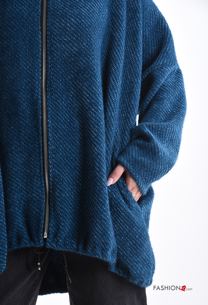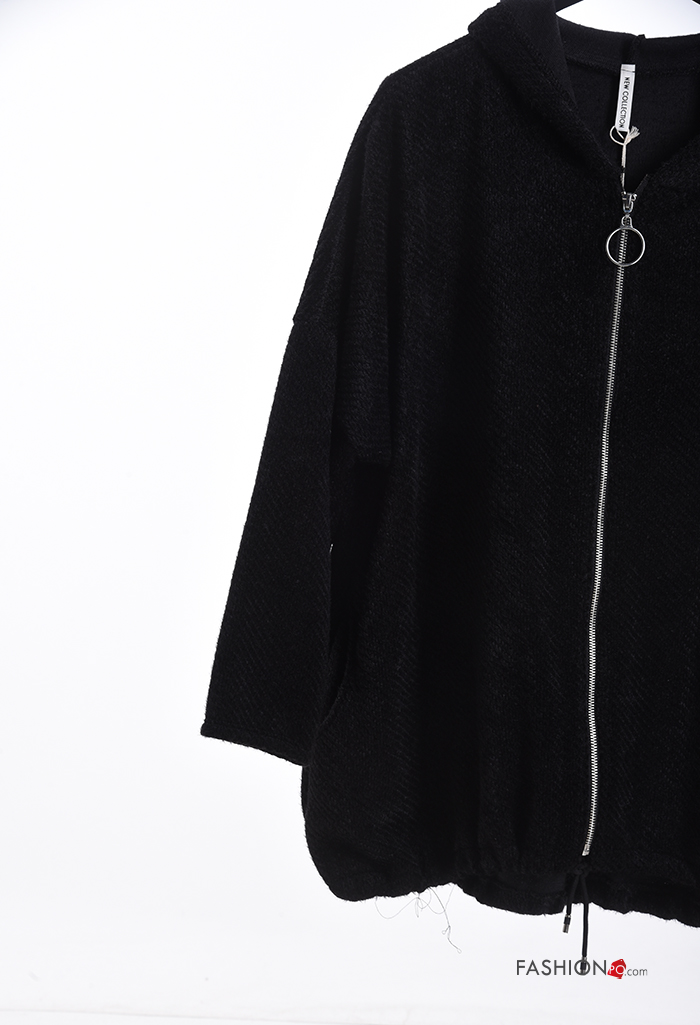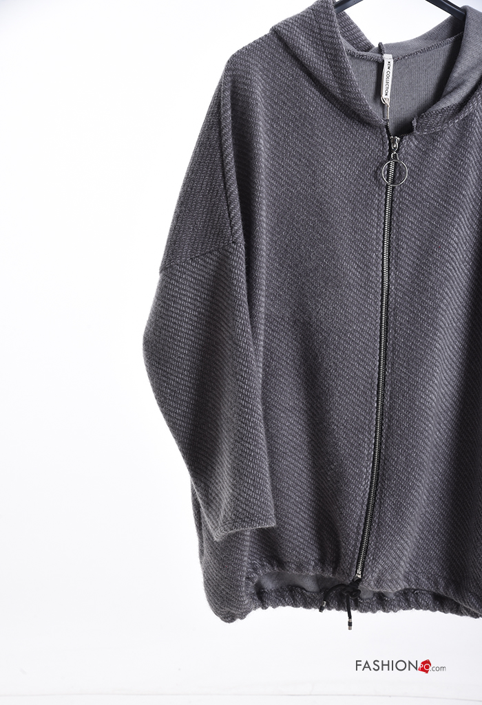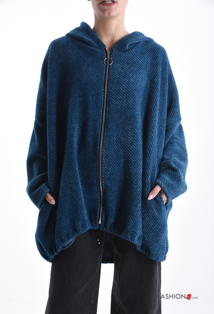Felpa oversize maniche lunghe con zip con tasche con cappuccio