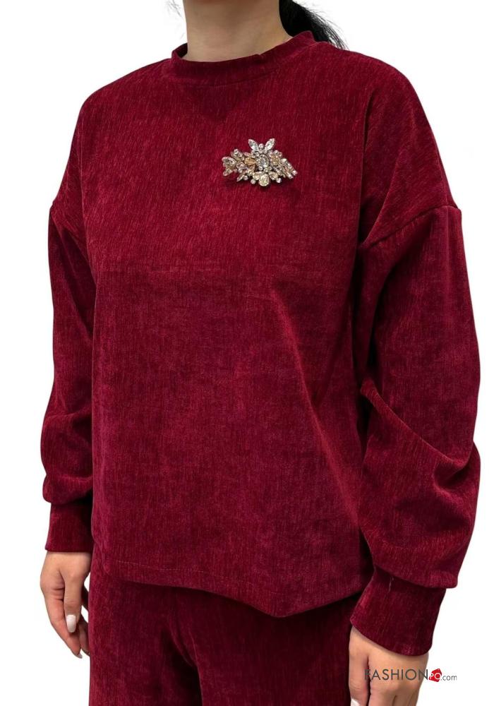 Home > Abbigliamento > Abbigliamento Sportivo > Felpa girocollo in velluto maniche lunghe con strass