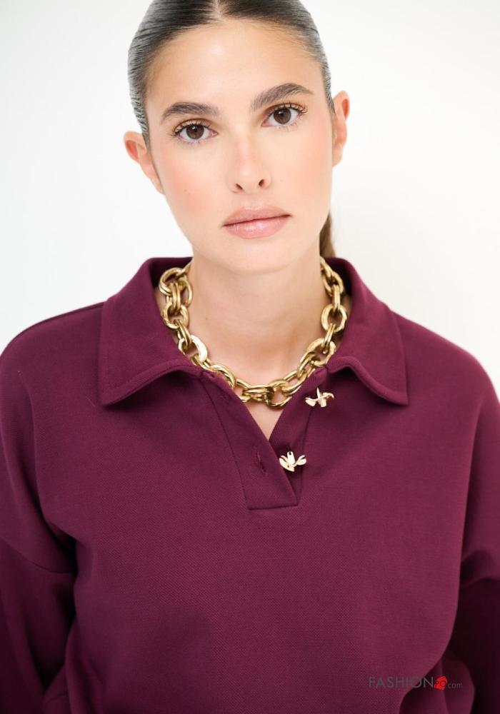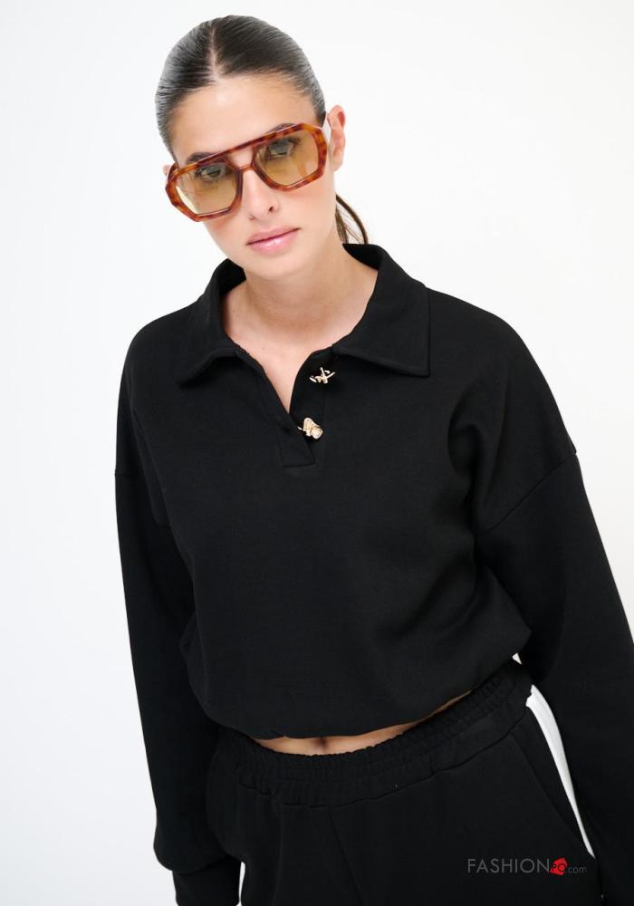 Felpa in Cotone maniche lunghe con colletto con bottoni con elastico