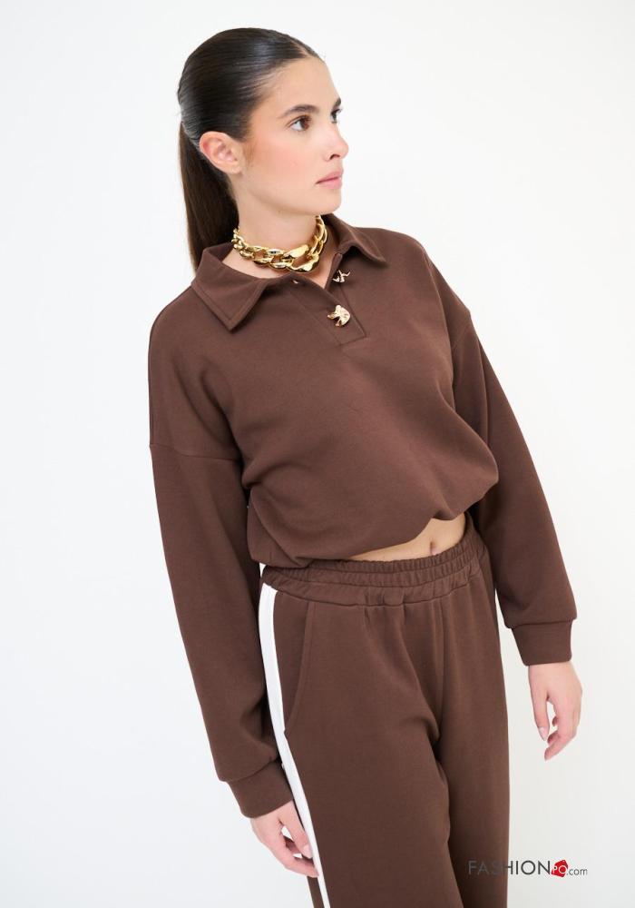 Home > Abbigliamento > Abbigliamento Sportivo > Felpa in Cotone maniche lunghe con colletto con bottoni con elastico