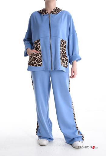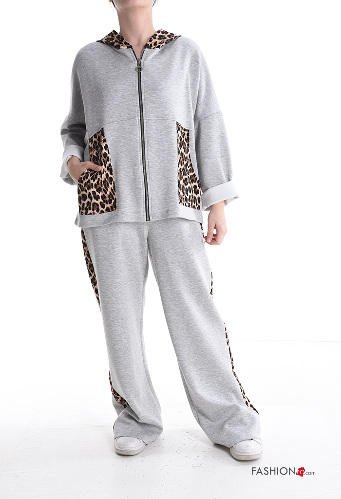 Tuta sportiva maniche lunghe lungo Fantasia animalier con elastico con cappuccio con tasche con zip