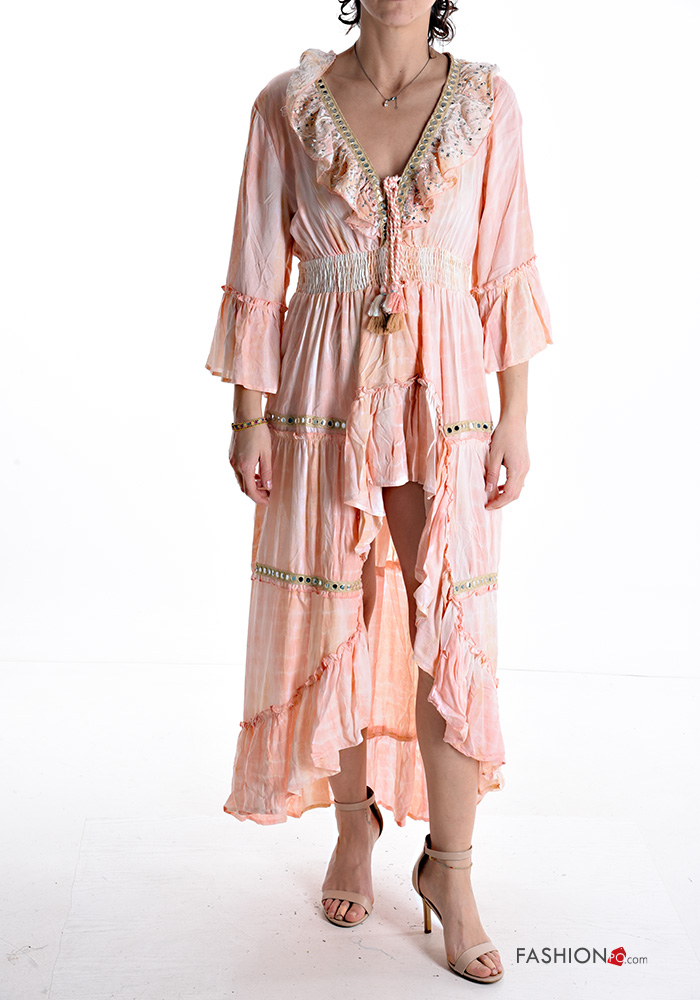 Abito asimmetrico maniche a tre quarti con balze scollo a V
