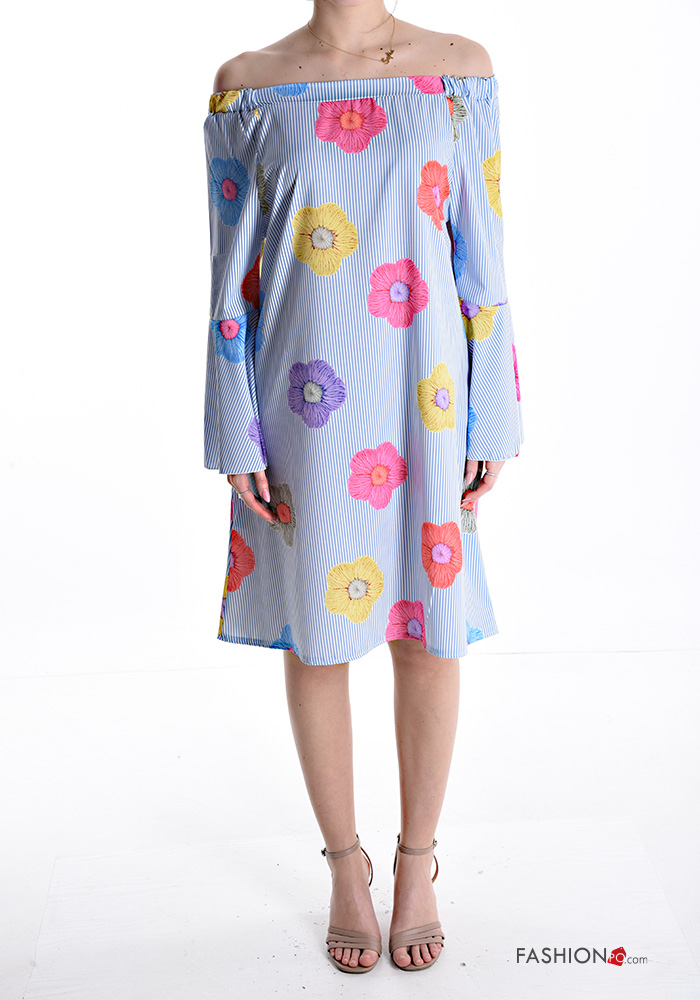 Home>Abbigliamento>Abiti> Abito maniche lunghe al ginocchio Fantasia floreale con elastico