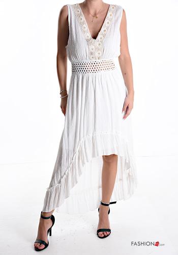 Abito asimmetrico senza maniche scollato sulla schiena Fantasia ricamata con balze scollo a V
