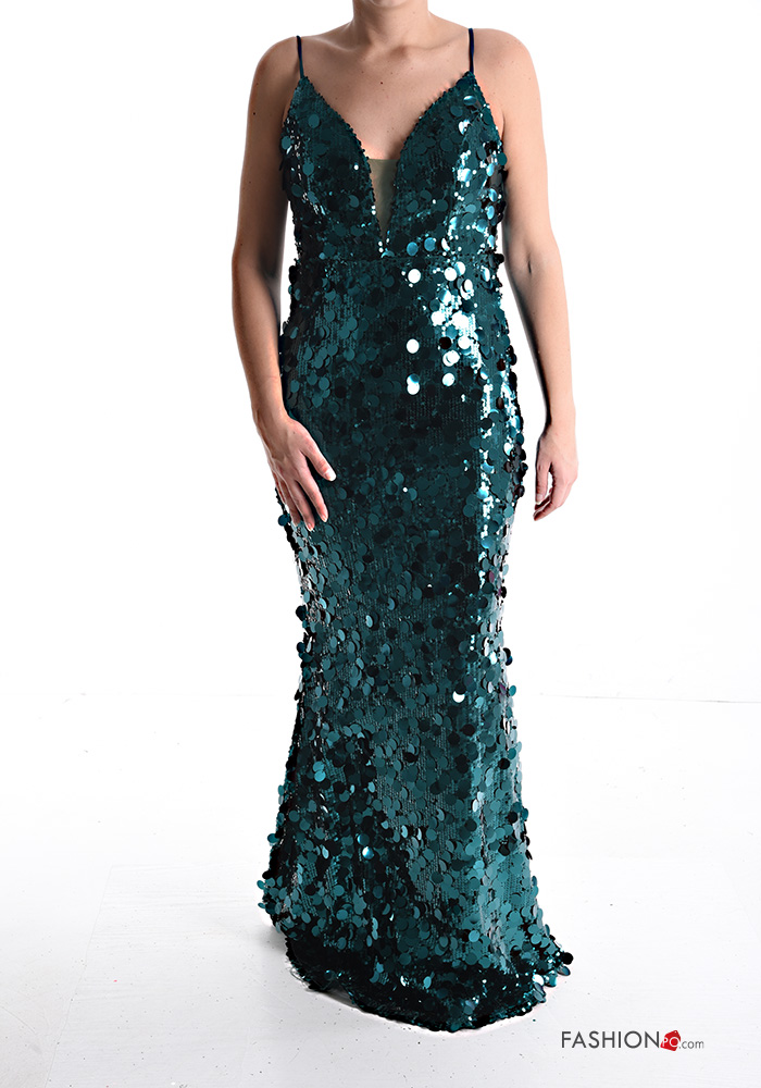 Abito scollato sulla schiena regolabile lungo scollo profondo con paillettes scollo a V